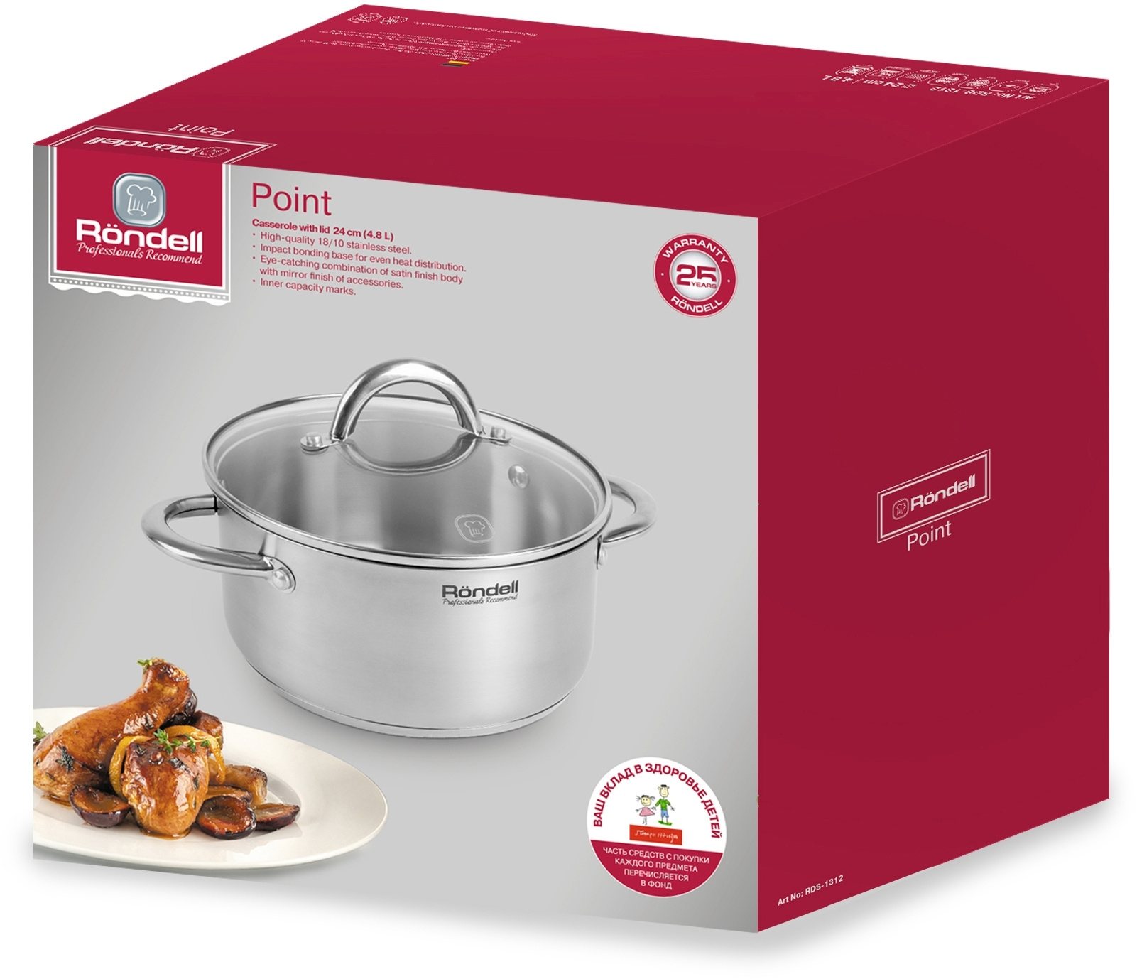 Кастрюля Rondell Point RDS-1312 4.8л. d=24см (с крышкой) стальной