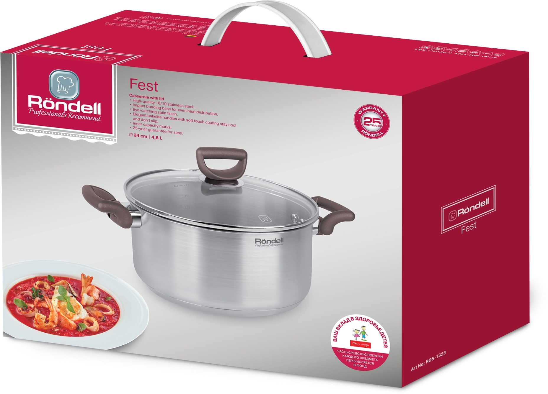 Кастрюля Rondell Fest RDS-1323 4.8л. d=24см (с крышкой) стальной