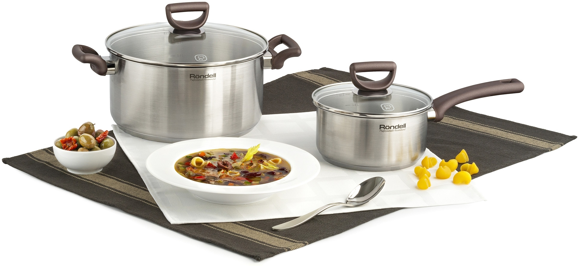 Внутренние отметки литража позволят вам в точности соблюдать требования рецептов. Ручки кастрюли изготовлены из бакелита с приятным на ощупь покрытием Soft Touch: они не нагреваются и не скользят в процессе использования. В комплект входят стеклянные крышки со специальным отверстием для выхода пара.