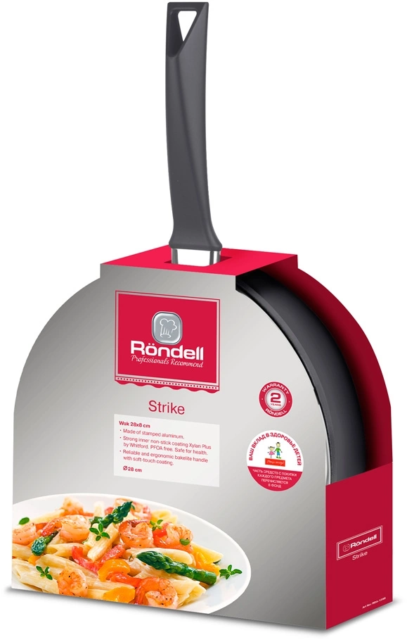 Сковорода ВОК (WOK) Rondell Strike RDA-1398 круглая 28см покрытие: Xylan Plus ручка несъемная (без крышки) серый