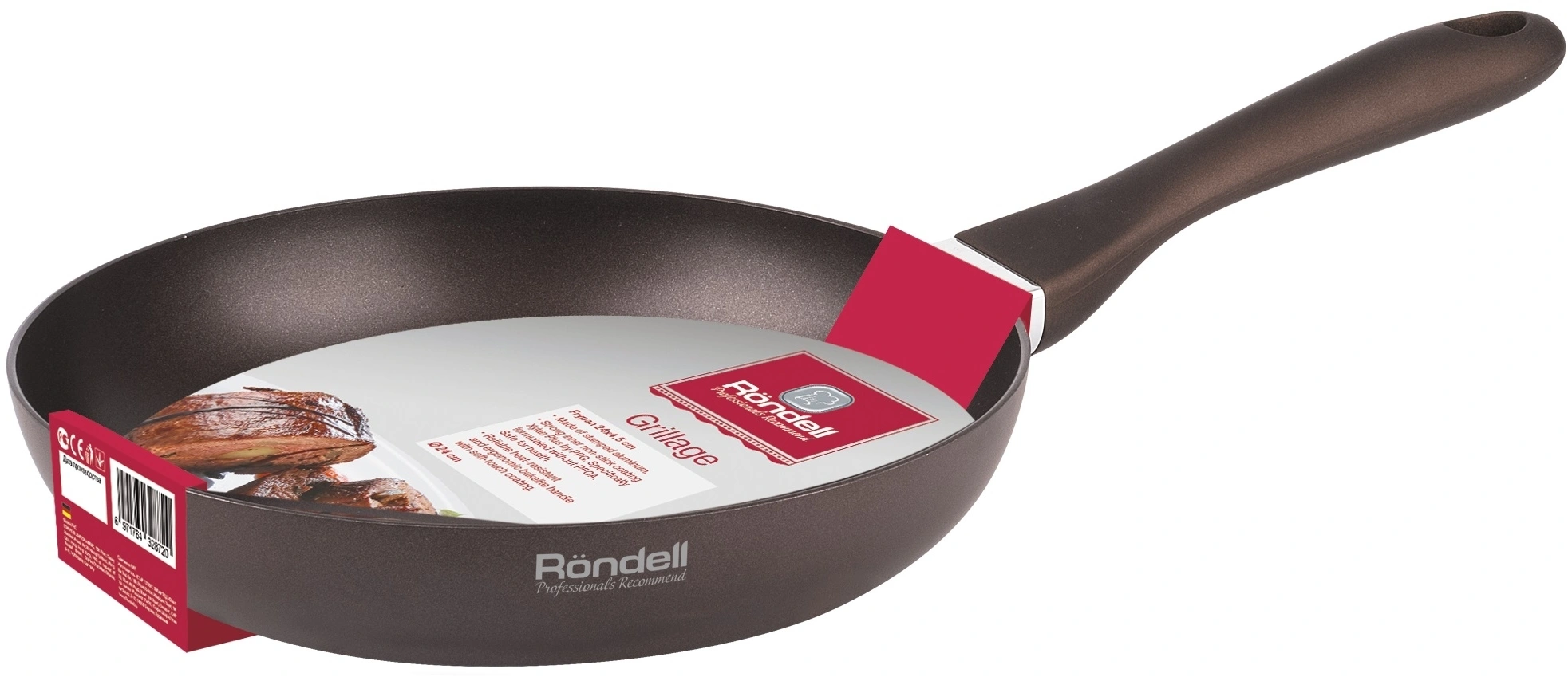 Сковорода Rondell Grillage RDA-1431 круглая 28см покрытие: Xylan Plus ручка несъемная (без крышки) коричневый