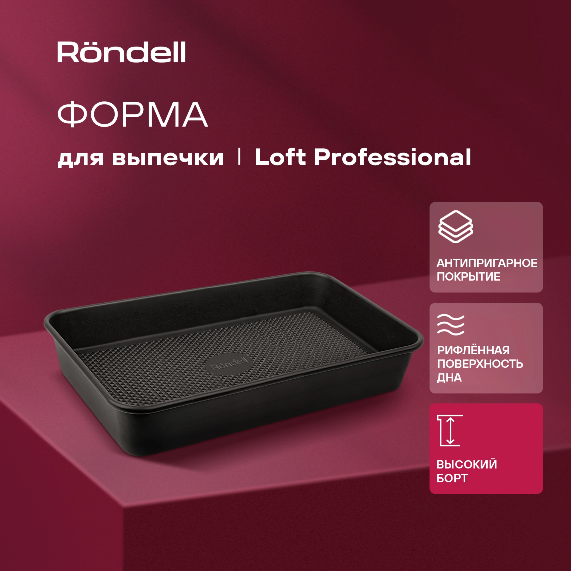 Форма для выпечки Rondell Loft Professional RDF-1510 прямоуг. 39.5x27.5x7.8см сталь темно-серый