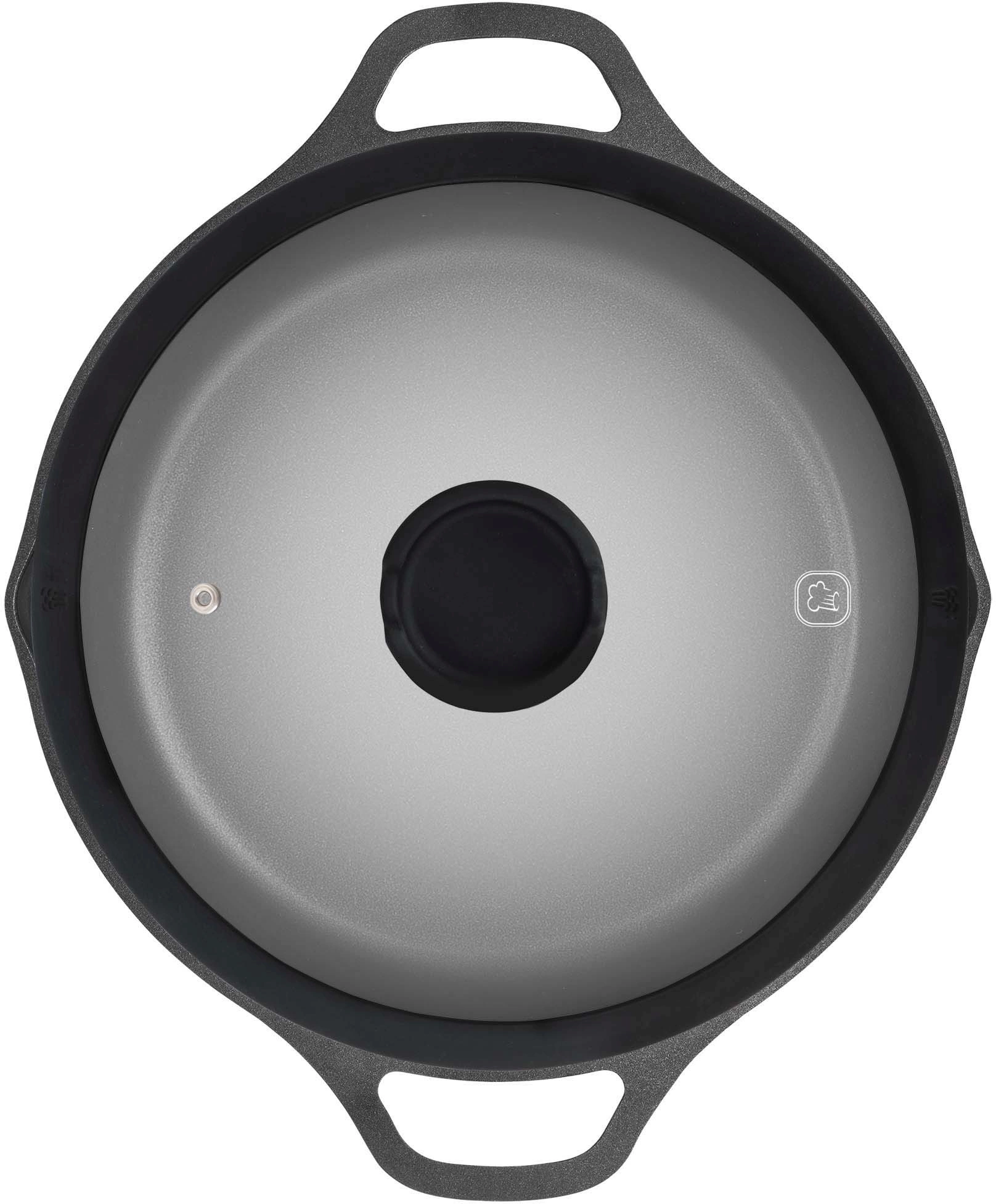 Посуда изготовлена из литого алюминия, известного своей высокой теплопроводностью, а значит рекомендуется для длительного томления блюд. Внутреннее трехслойное антипригарное покрытие Eclipse HB: абсолютно безопасное и невероятно прочное, поэтому можно при жарке использовать металлические лопатки. - БрендRONDELL
