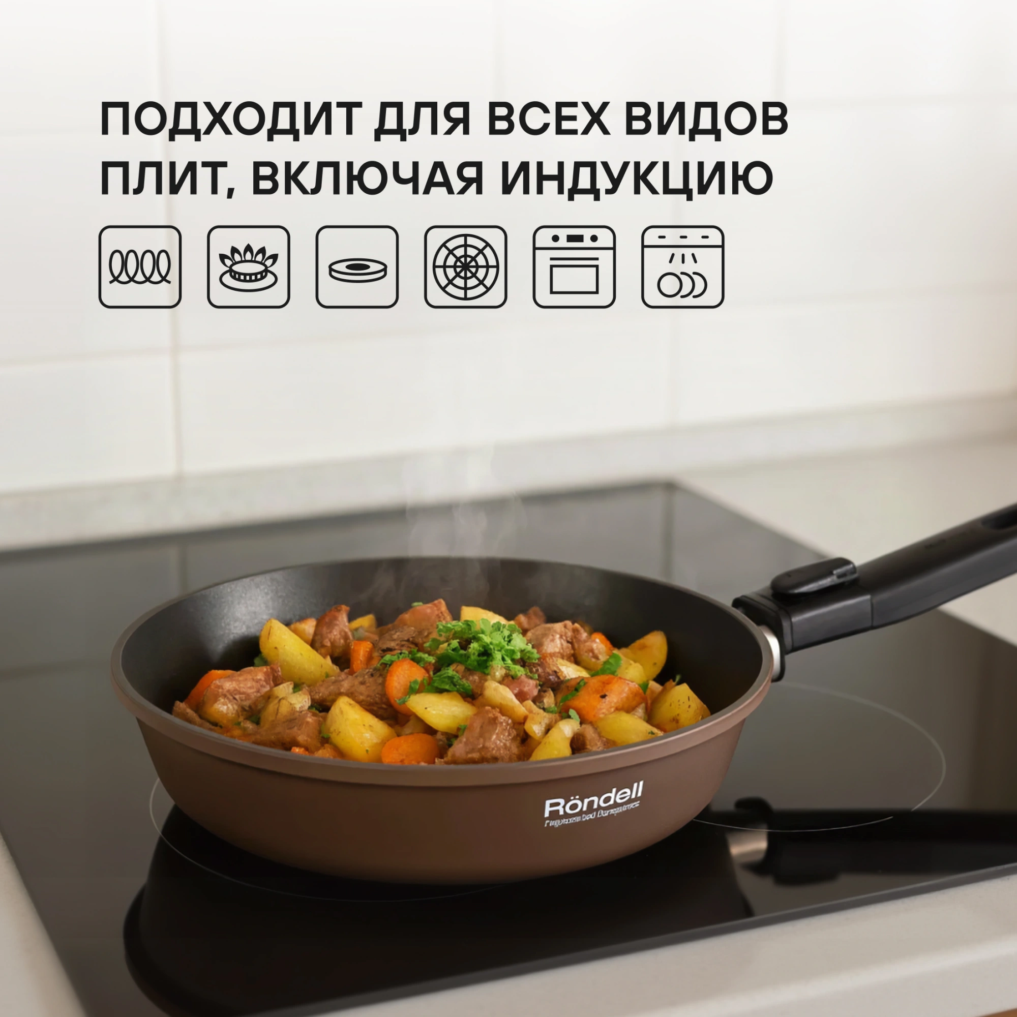 Сковорода Rondell Praline RDA-1566 круглая 28см покрытие: Xylan Plus ручка съемная (без крышки) коричневый
