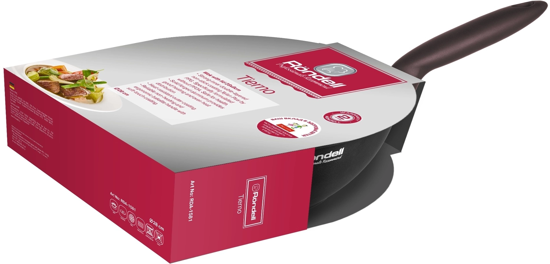 Сковорода ВОК (WOK) Rondell Tierno RDA-1581 круглая 28см покрытие: Xylan Plus ручка несъемная (с крышкой) черный