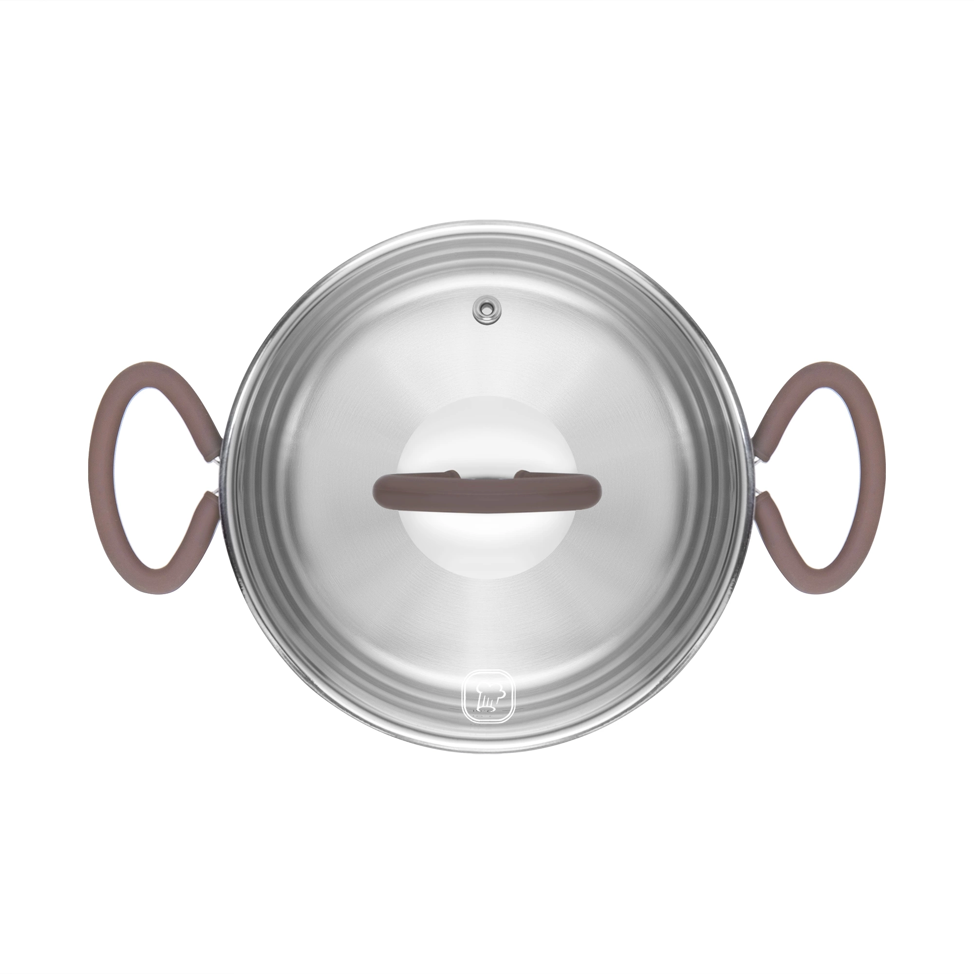 Как и сами предметы коллекции, все ручки изготовлены из высококачественной нержавеющей стали 18/10 и имеют силиконовые накладки цвета пепельной розы. Они не скользят даже во влажных руках и не нагреваются, поэтому прихватки вам не понадобятся. Посуда отличается особой надежностью и долговечностью.