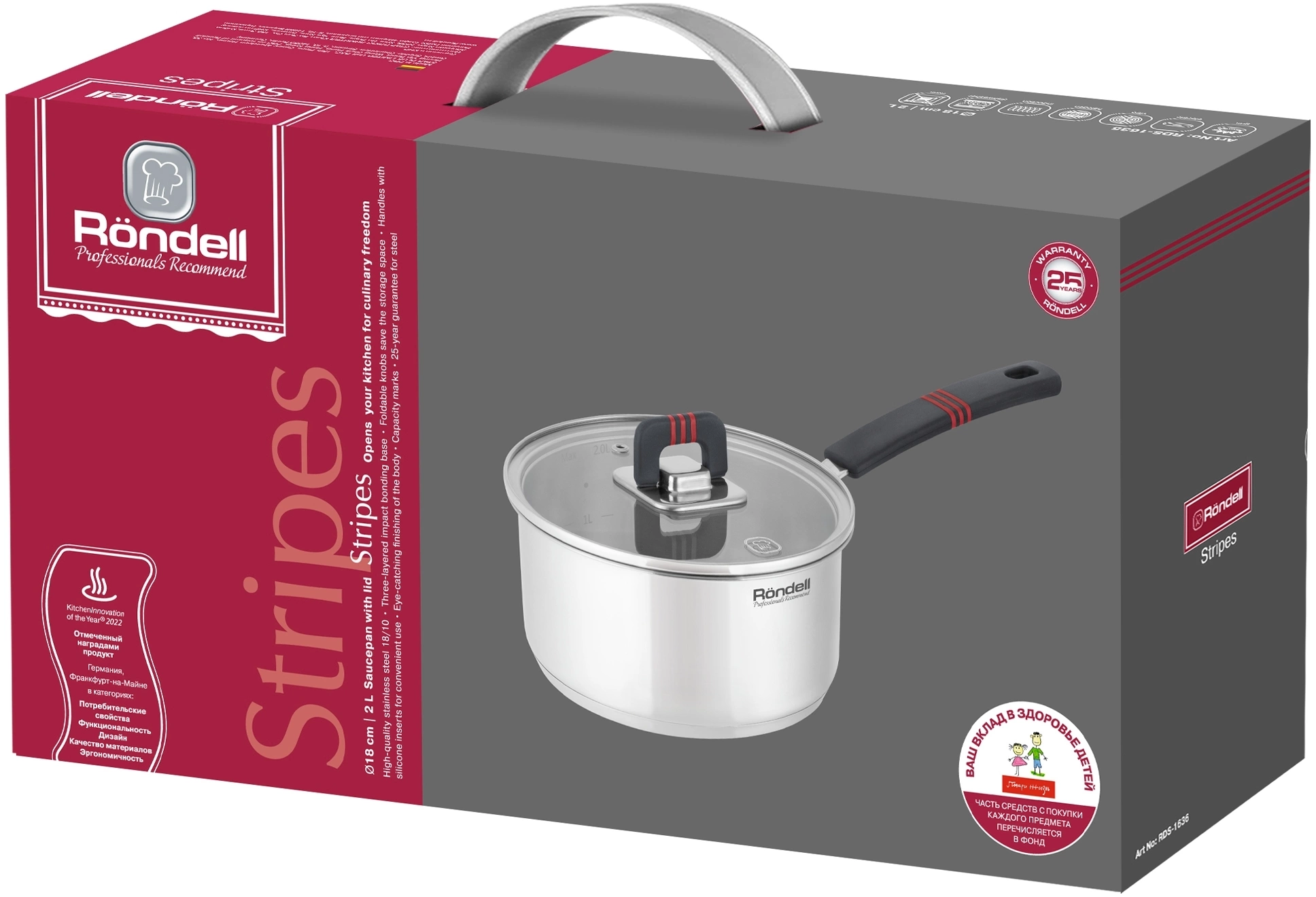 Ковш Rondell Stripes RDS-1635 2л. d=18см (с крышкой) стальной