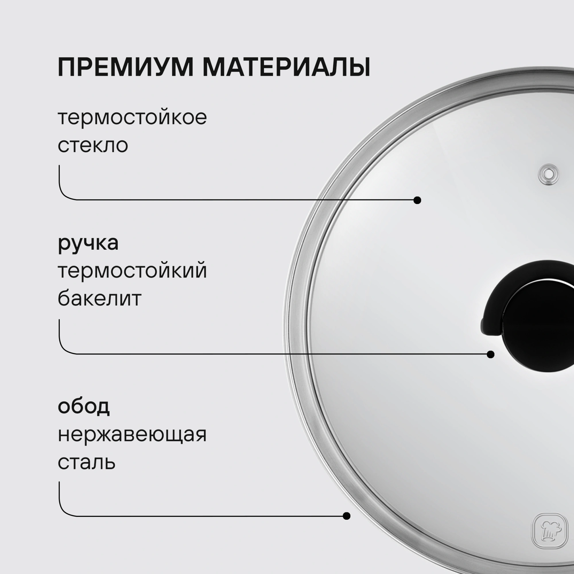 Крышки коллекции Handy изготовлены из качественного термостойкого стекла, а значит, долговечны и надежны в использовании. Но на этом достоинства не заканчиваются! Крышки оснащены ненагревающимися ручками из бакелита, уникальный дизайн которых позволяет им складываться при необходимости.