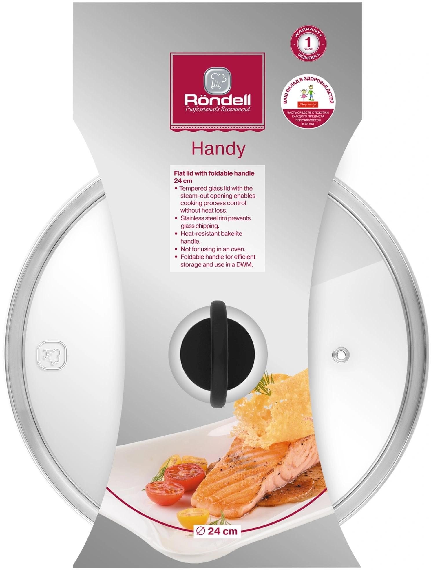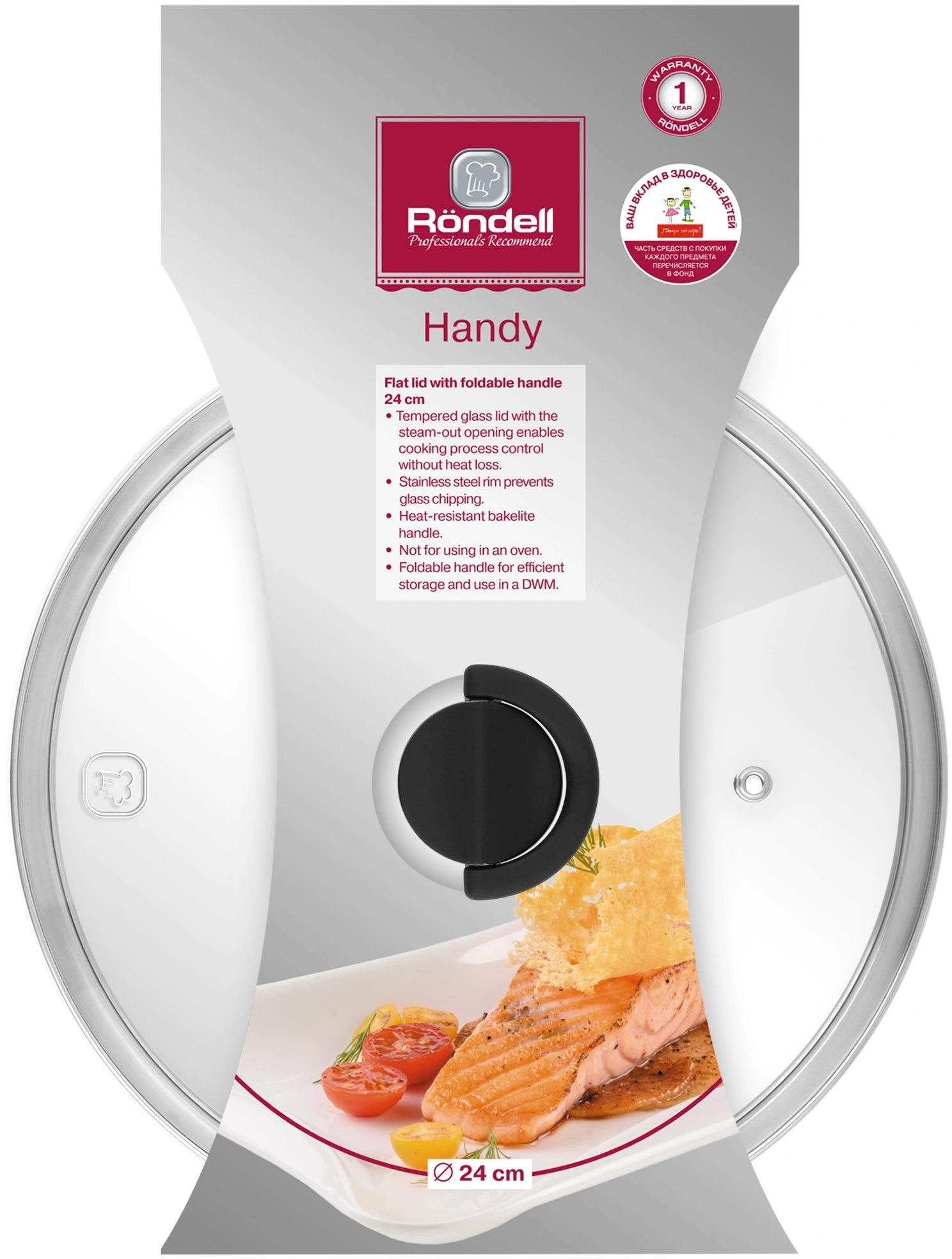 Крышка Rondell Handy RDA-1686 d=24см крыш.прозрачный руч.черная