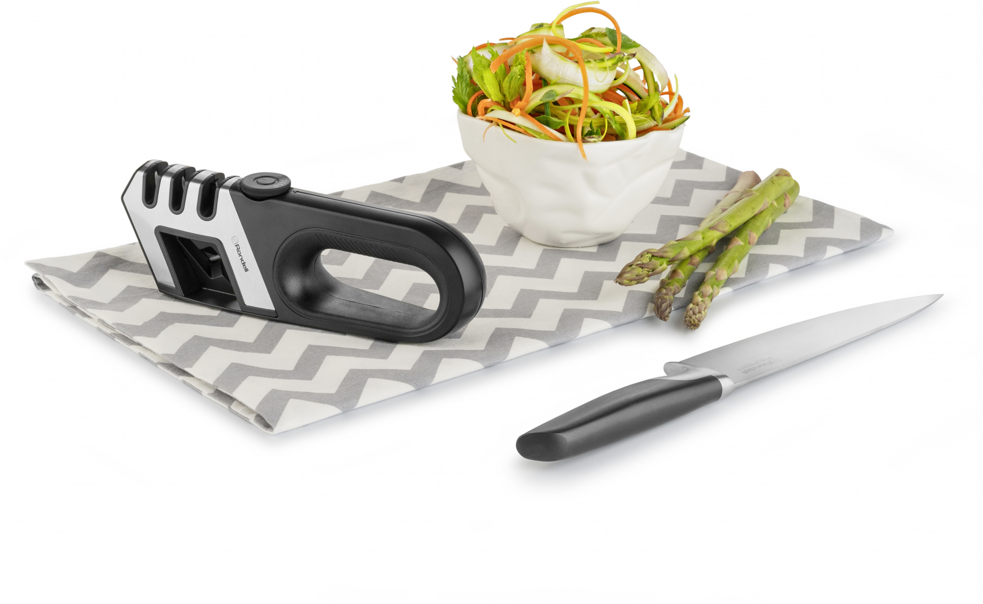 К вашим услугам три вида точильной поверхности: вольфрамовая сталь, стержень с алмазным напылением, а также керамический стержень. Угол заточки можно регулировать по желанию (19–40 градусов). Для ножниц в устройстве предусмотрен специальный стержень с алмазным напылением.