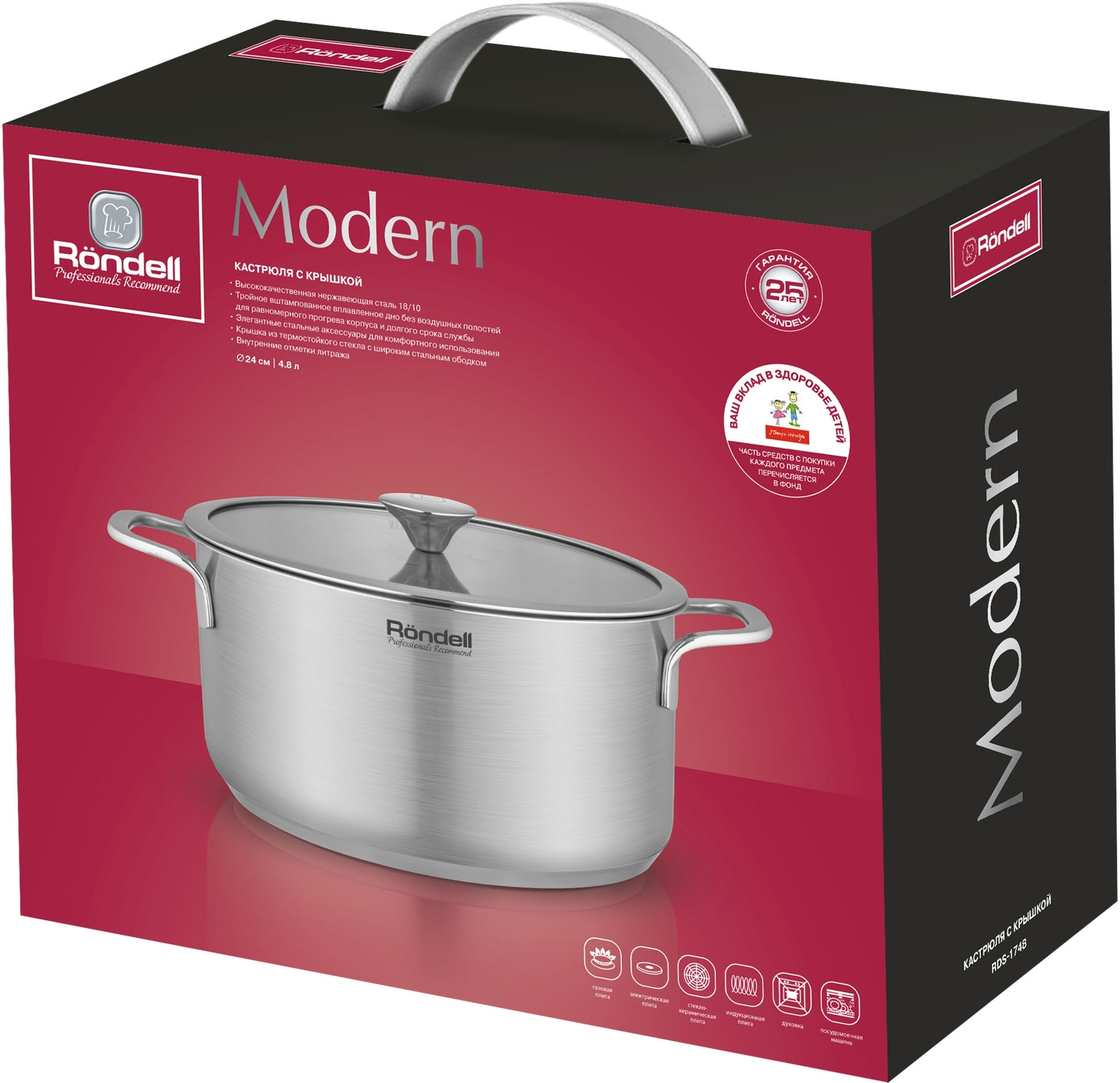 Кастрюля Rondell Modern RDS-1748 4.8л. d=24см (с крышкой) стальной