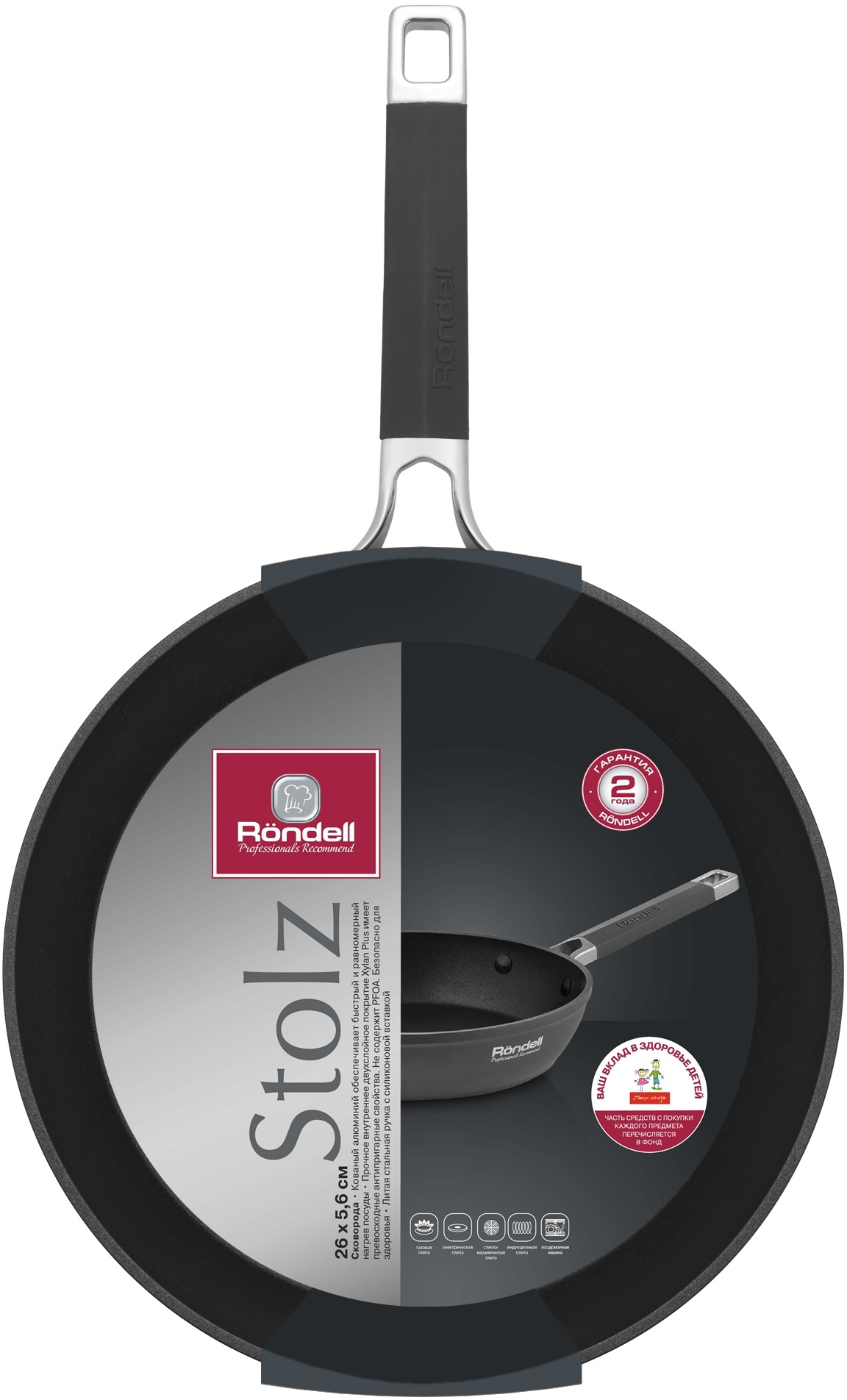 Сковорода Rondell Stolz RDA-1766 круглая 26см покрытие: Xylan Plus ручка несъемная (без крышки) серый