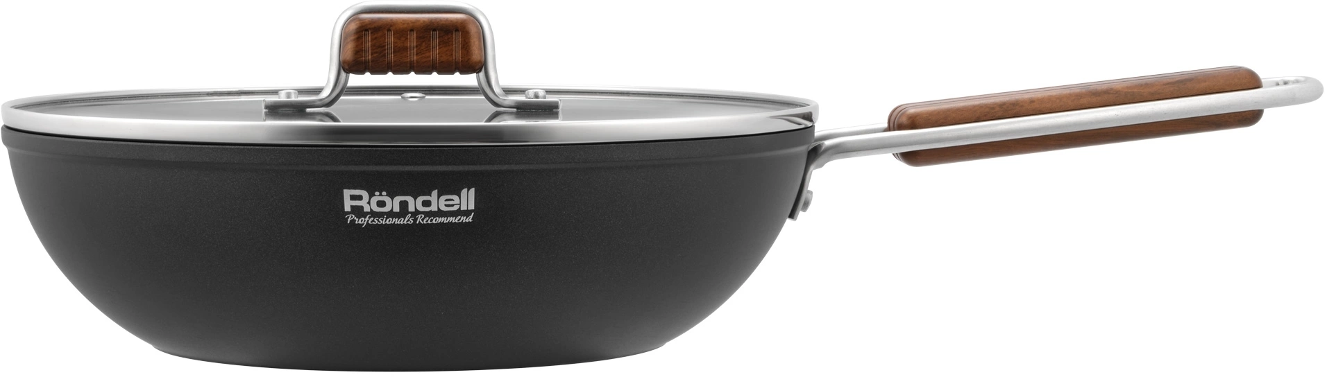 Сковорода ВОК (WOK) Rondell Fjord RDA-1800 круглая 28см покрытие: Xylan Plus ручка несъемная (с крышкой) черный