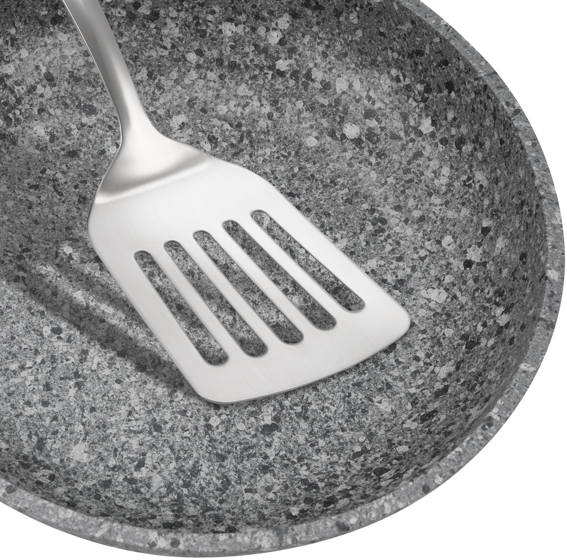 Одно из главных преимуществ коллекции Granit Carrara – внутреннее пятислойное покрытие на базе Quantum®2 от PPG, которое обладает превосходными антипригарными свойствами и безопасно для здоровья, так как не содержит вредных веществ. Кроме того, Вы можете использовать металлические аксессуары.
