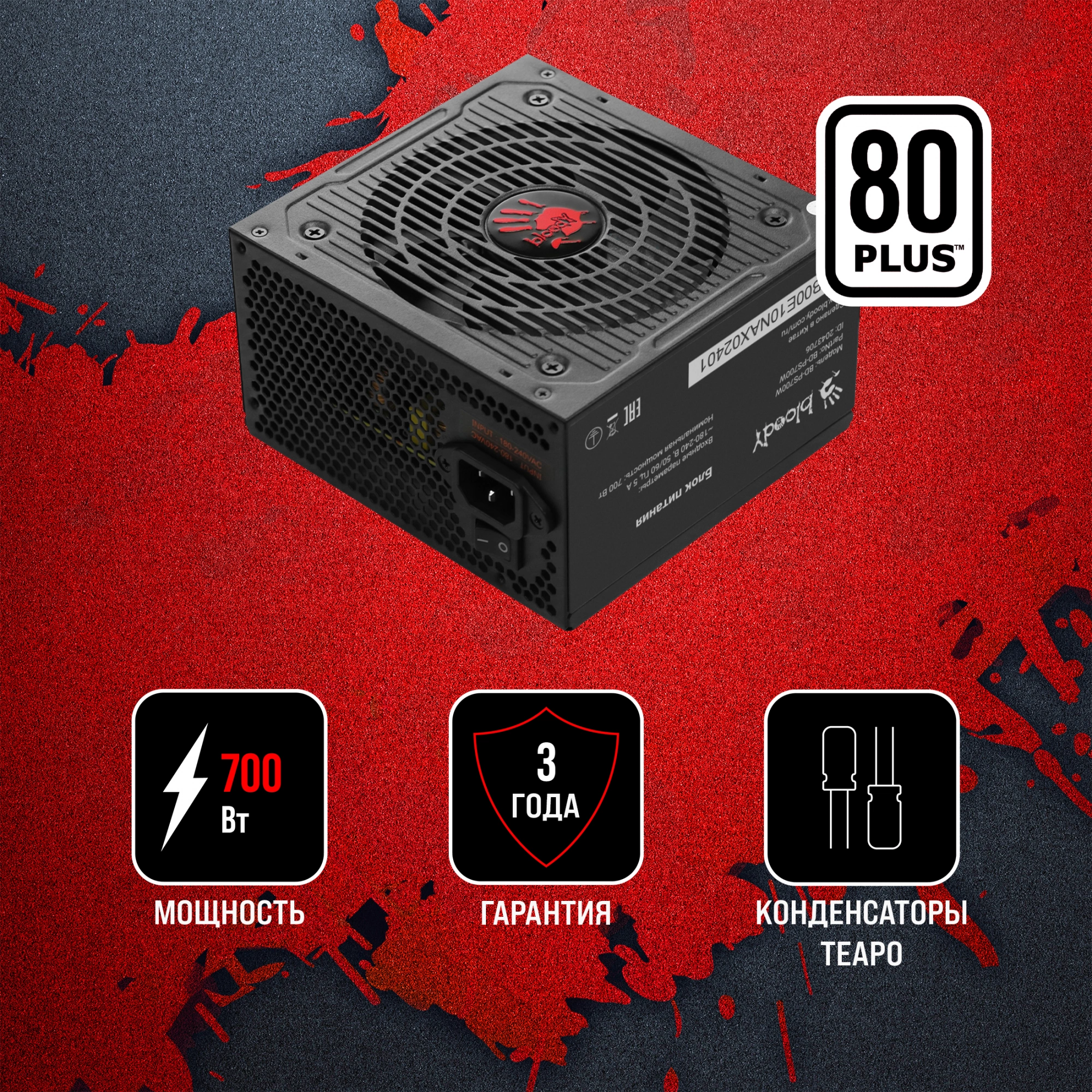 Блок питания Bloody ATX 700W BD-PS700W 80 PLUS WHITE (20+4pin) APFC 120mm fan 6xSATA RTL