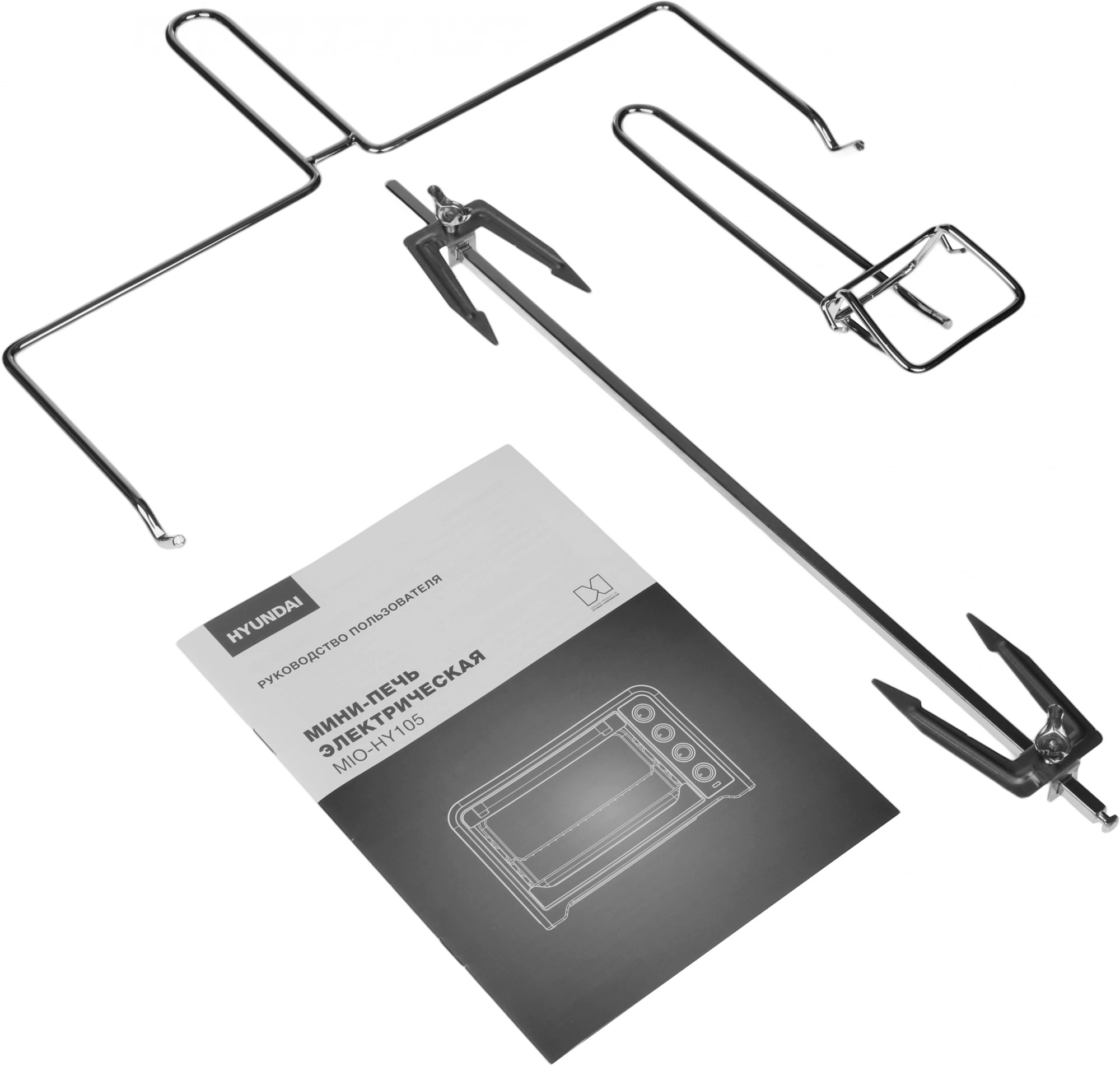 - Дополнительно в комплектеподдон для сбора крошек и масла, вертел, ручка для снятия вертела, противень, ухват для снятия противня, хромированная решетка гриль