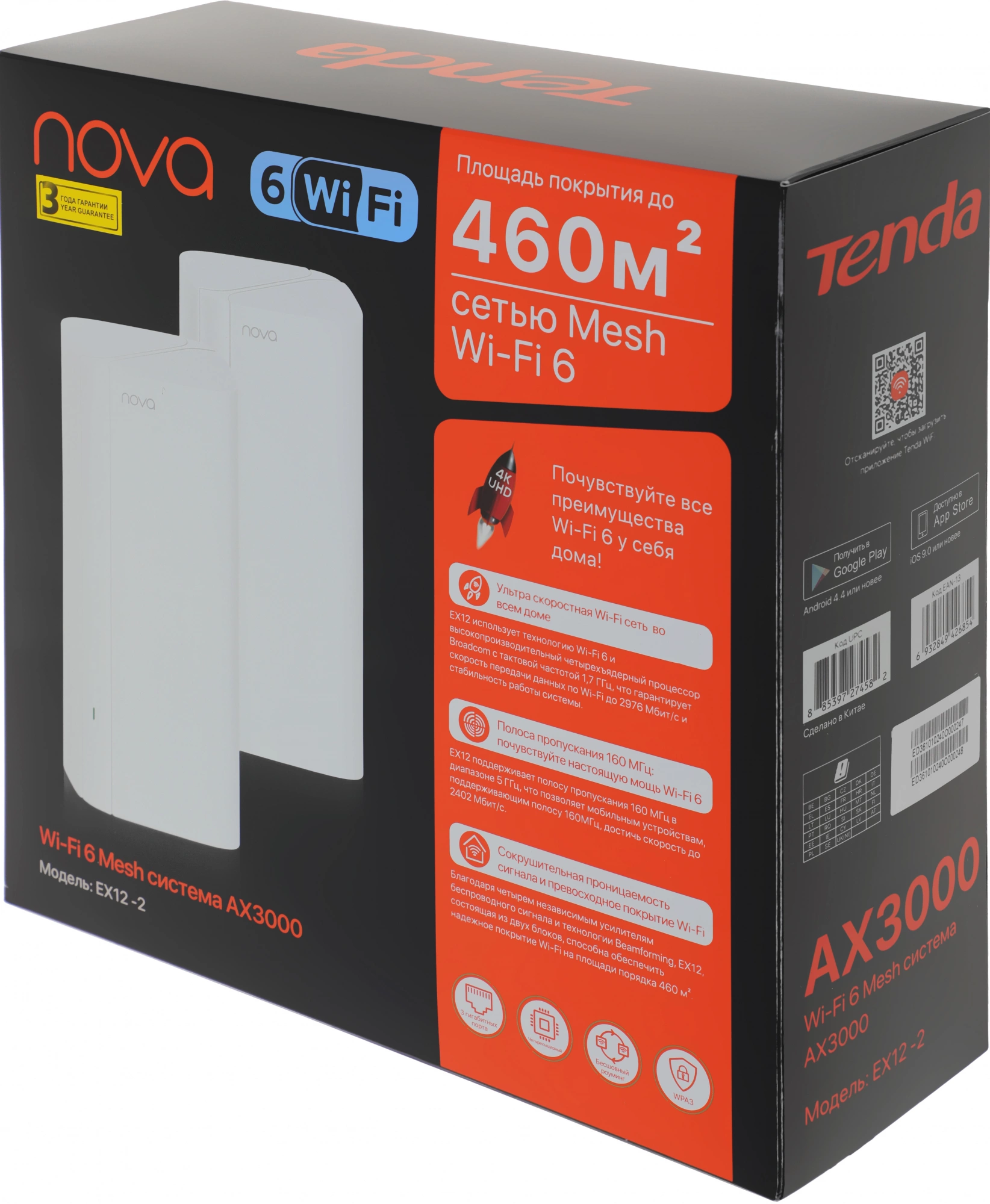 Бесшовный Mesh роутер Tenda EX12 (EX12(2-PACK)) AX3000 10/100/1000BASE-TX белый (упак.:2шт)