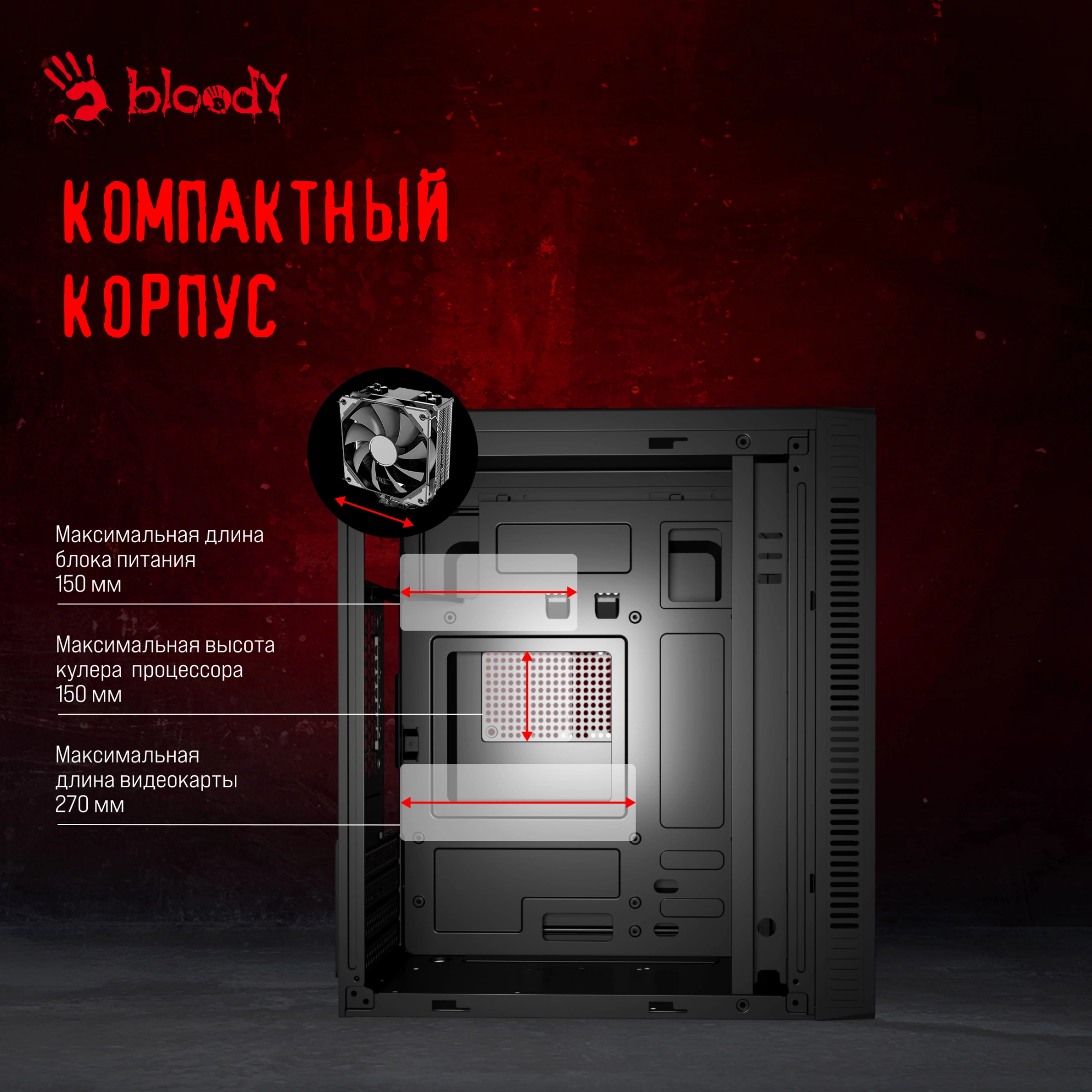 Корпус Bloody BD-CC101 черный без БП mATX 1x80mm 1x92mm 2x120mm 2xUSB2.0 1xUSB3.0 audio