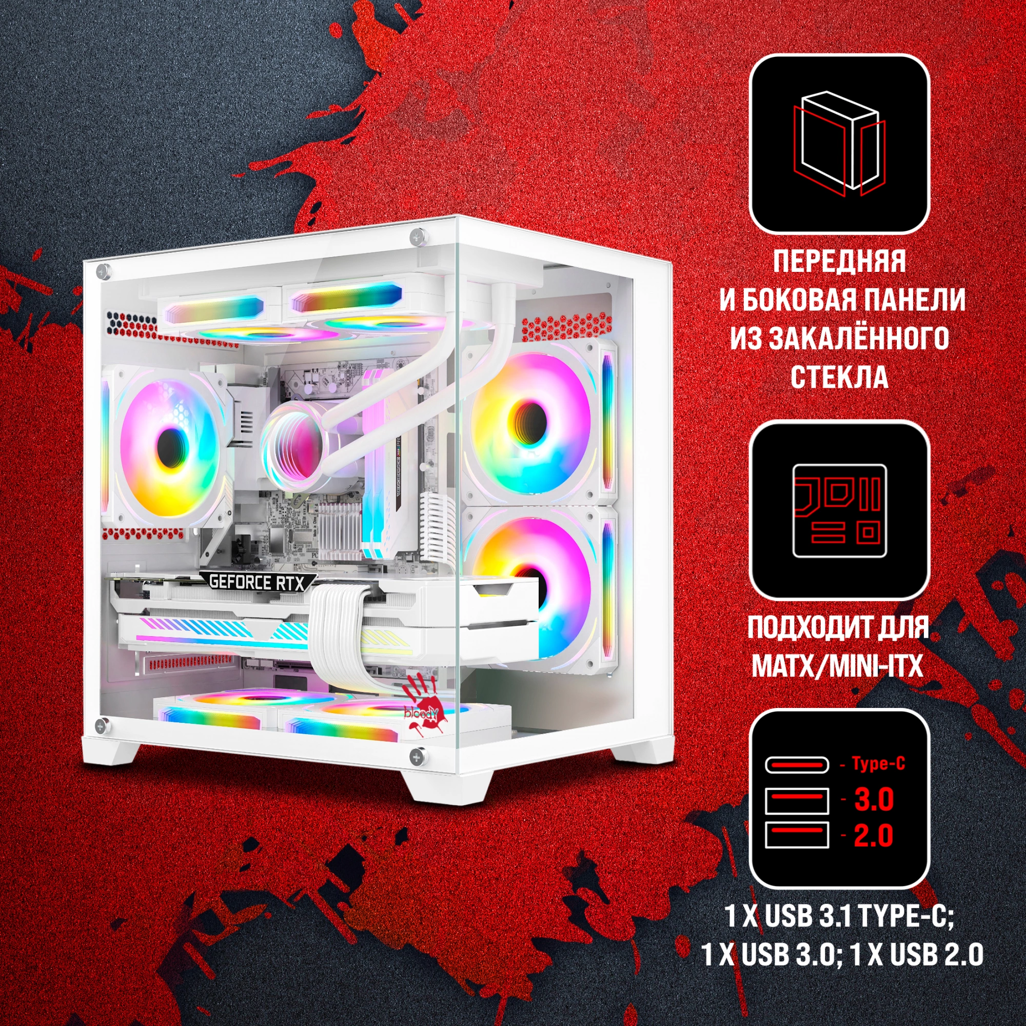 Корпус Bloody BD-CC105 белый без БП mATX 5x120mm 1xUSB2.0 1xUSB3.0 audio bott PSU