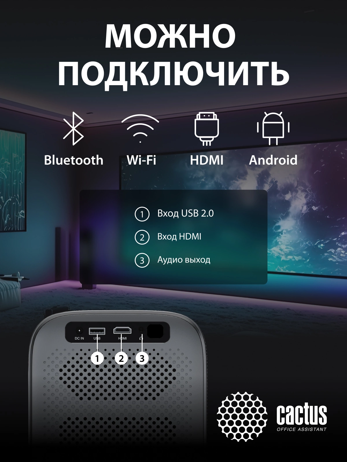 Проектор Cactus CS-PRC.07B.Full HD-A LCD 9400Lm LS 350Lm ANSI (1920x1080) 2000:1 ресурс лампы:50000часов 1xUSB typeA 1xHDMI 1кг