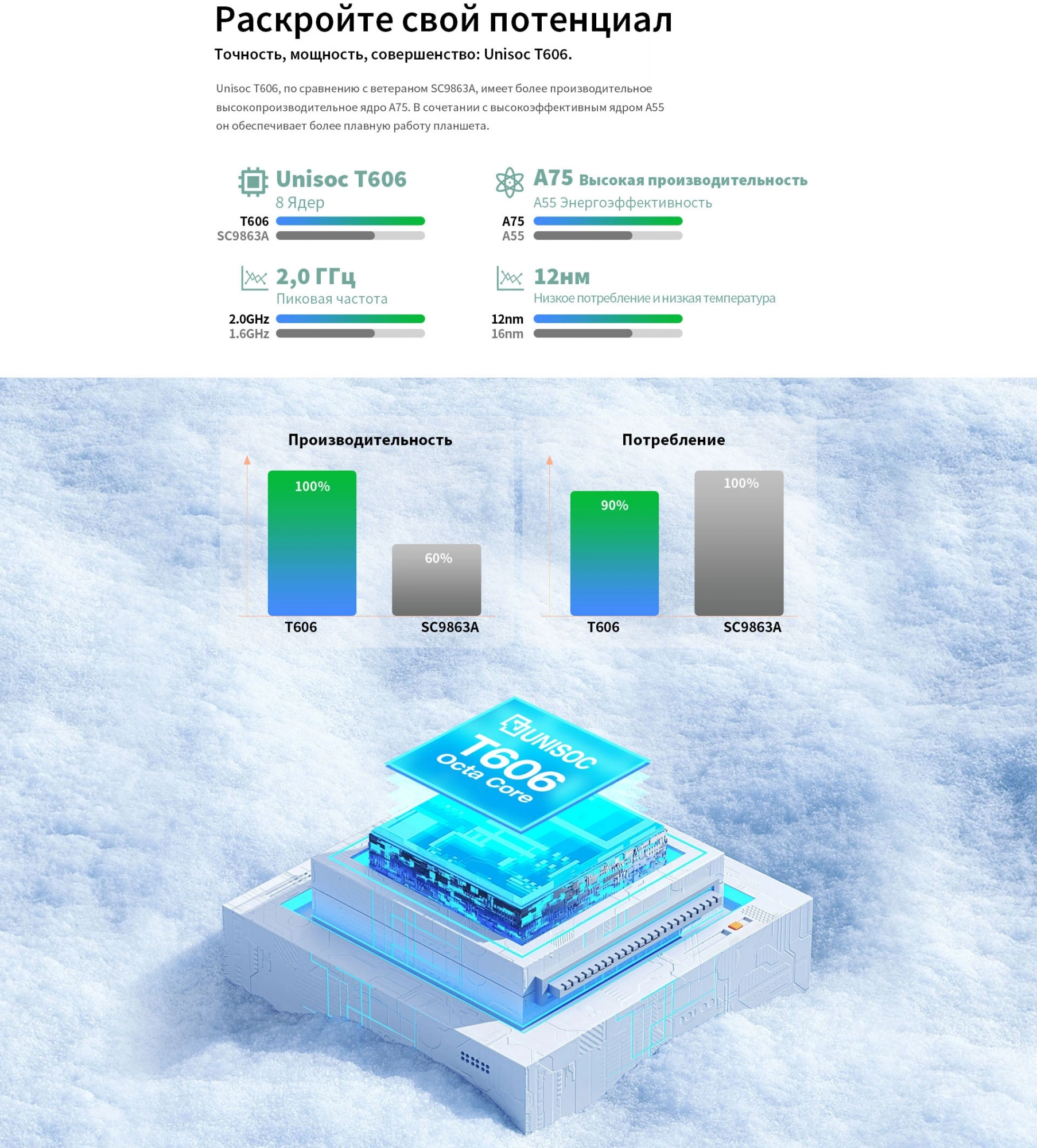 Планшет Teclast M50 T606 (1.6) 8C RAM6Gb ROM128Gb 10.1" IPS 1280x800 4G Android 14 голубой 13Mpix 5Mpix BT WiFi microSD 256Gb 6000mAh 10hr