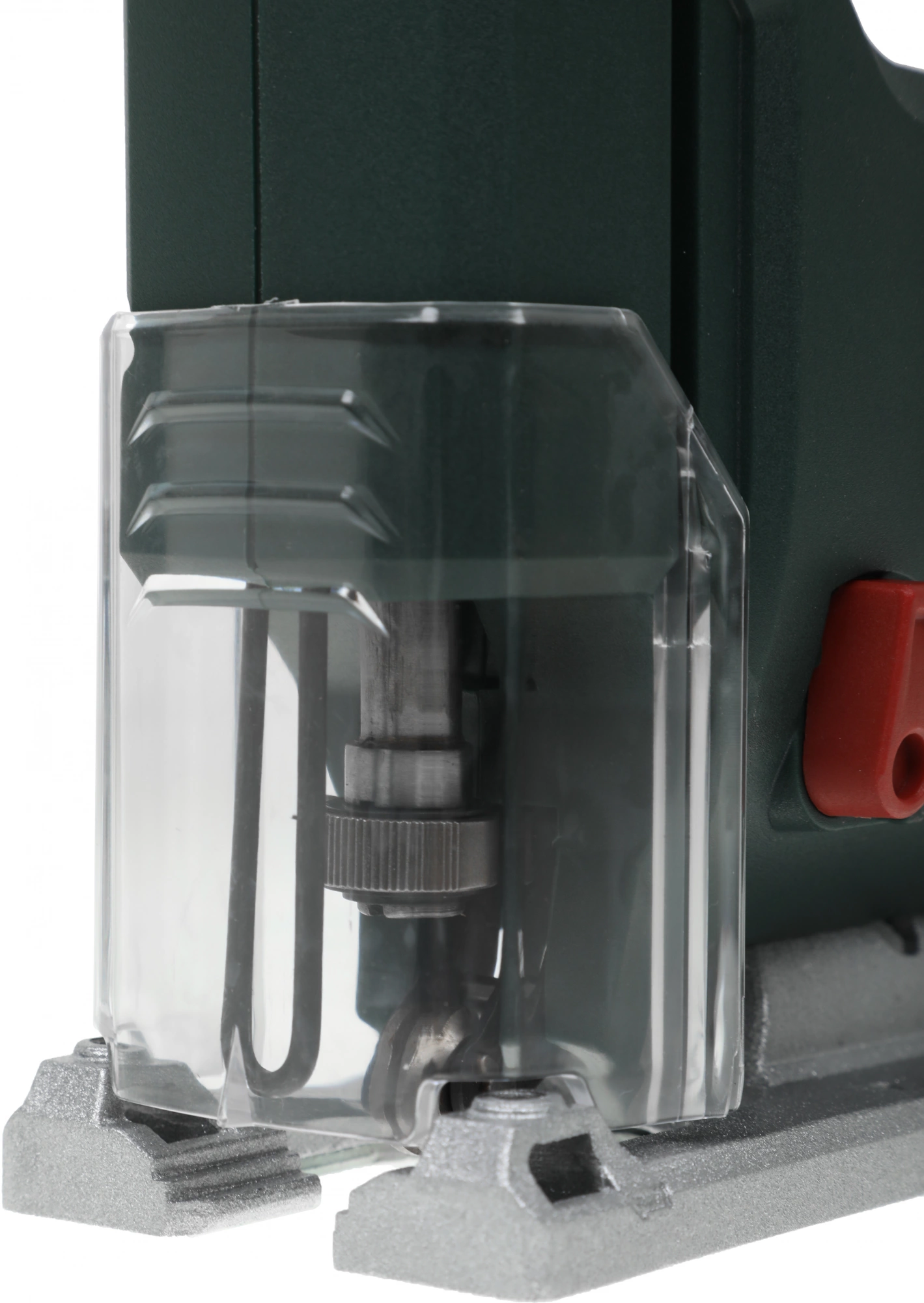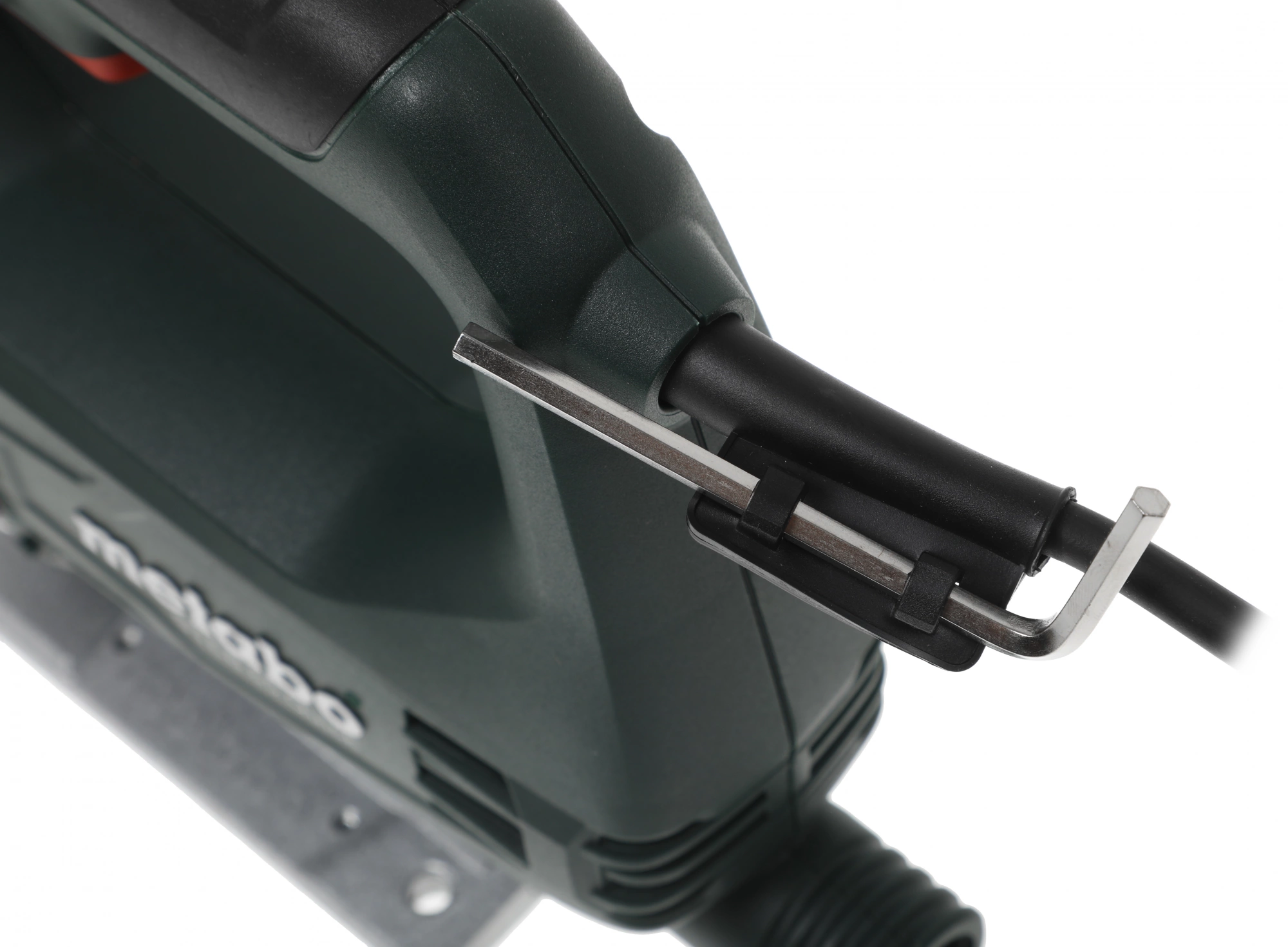 - ОсобенностиСистема Metabo Quick для смены пильного полотна без использования инструментов. Дуговая рукоятка с нескользящей накладкой Softgrip. Электроника Vario (V) - управление частотой ходов в соответствии со свойствами материала.