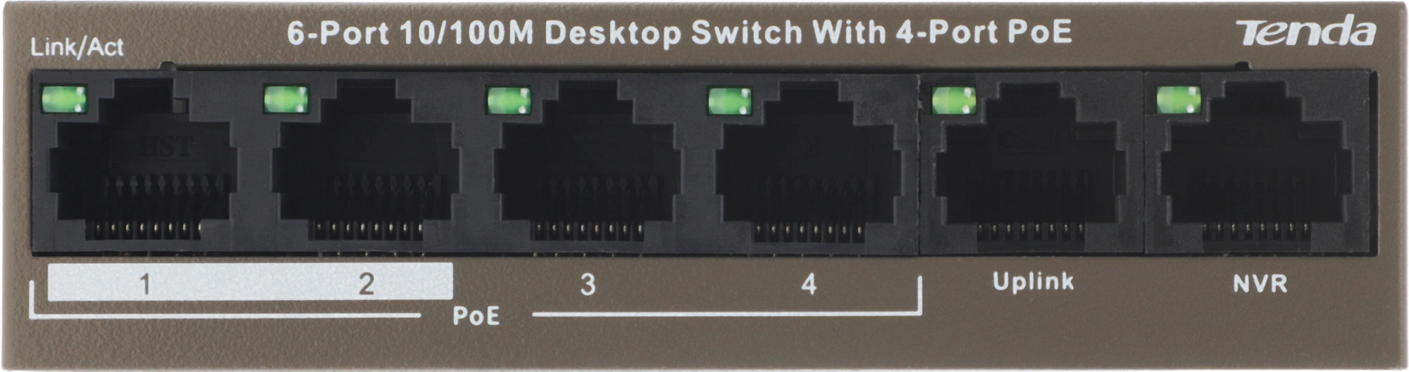 Коммутатор Tenda TEF1106P-4-63W (L2) 6x100Мбит/с 4PoE 63W неуправляемый