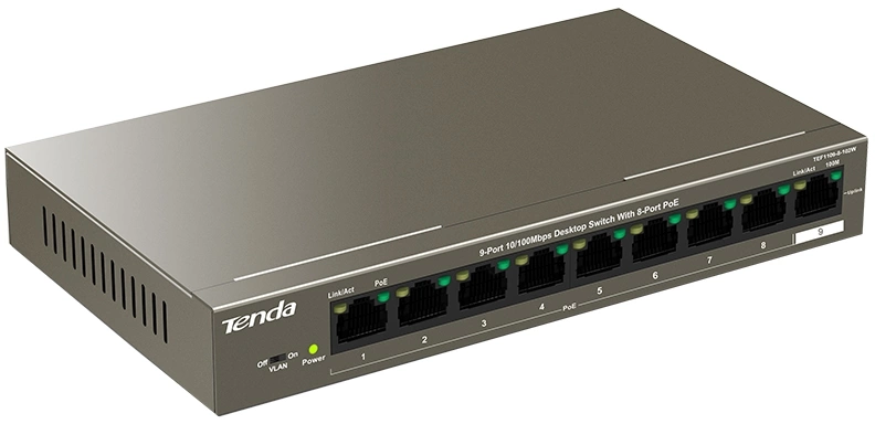 Коммутатор Tenda TEF1109P-8-102W (L2) 9x100Мбит/с 8PoE 92W неуправляемый