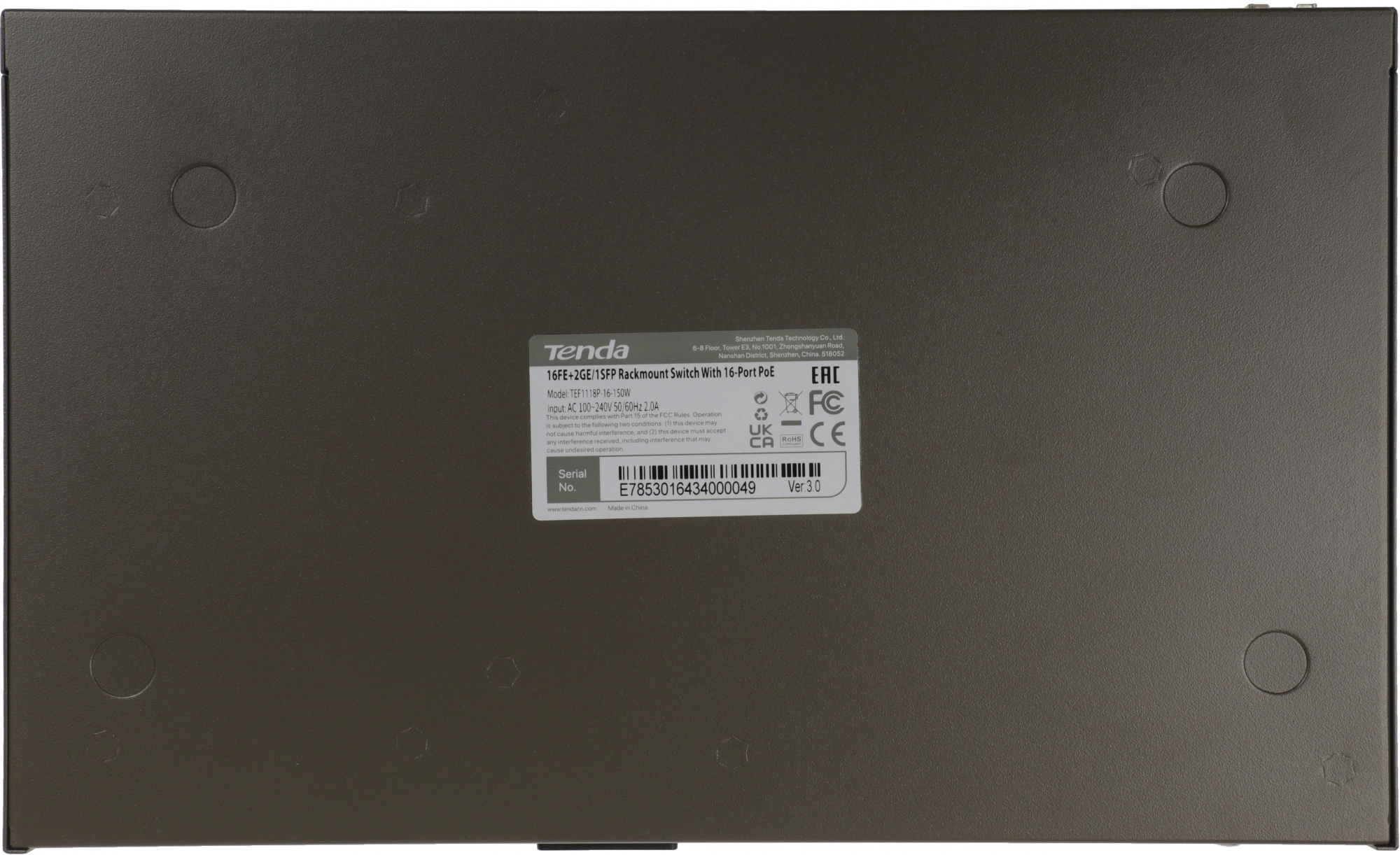 Коммутатор Tenda TEF1118P-16-150W (L2) 16x100Мбит/с 2x1Гбит/с 1SFP 16PoE 130W неуправляемый