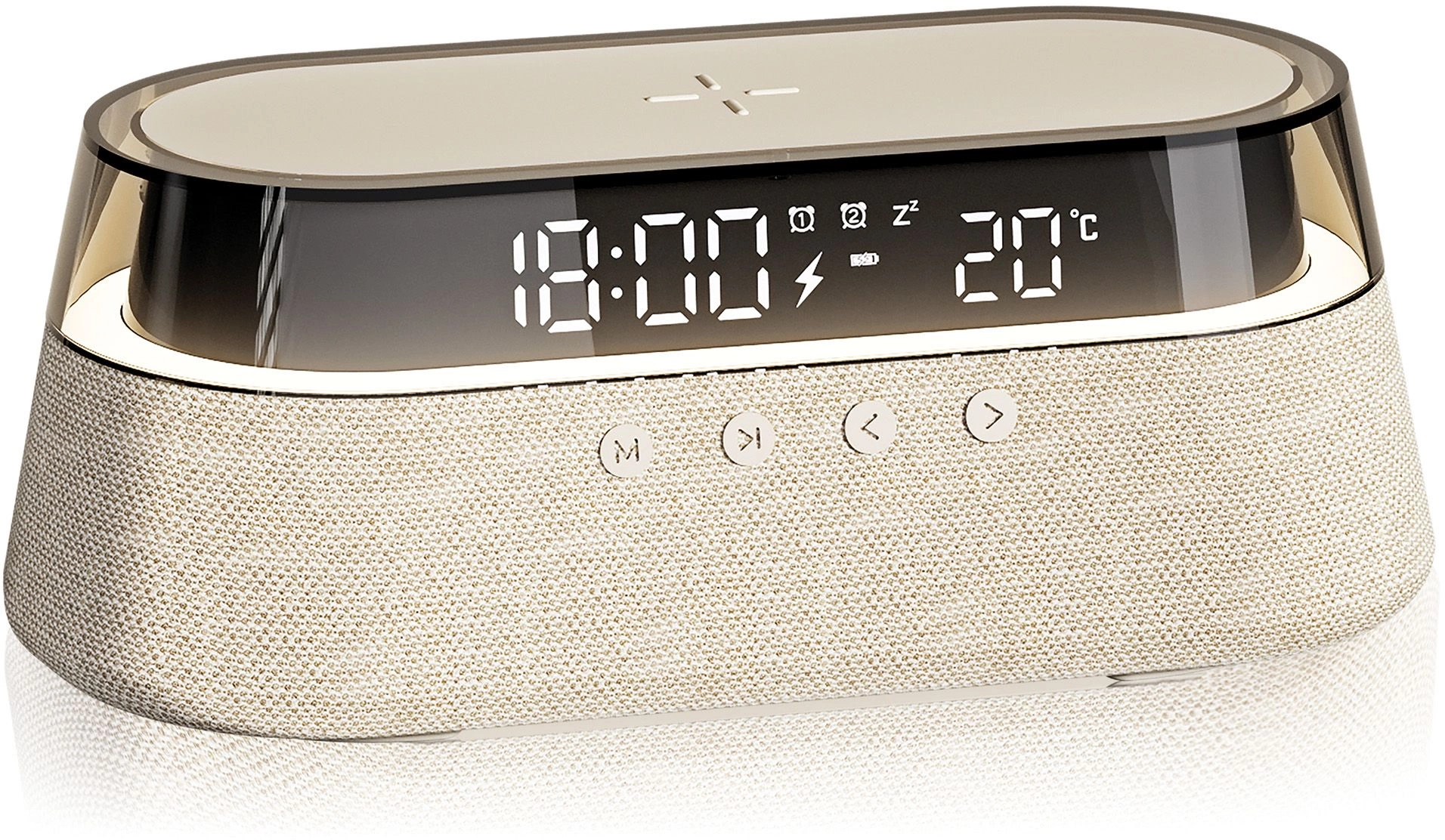 Ночник и часы с регулируемой подсветкой, будильник, радио, беспроводная зарядка для ваших устройств и мощная музыкальная колонка собраны в одном уникальном гаджете.