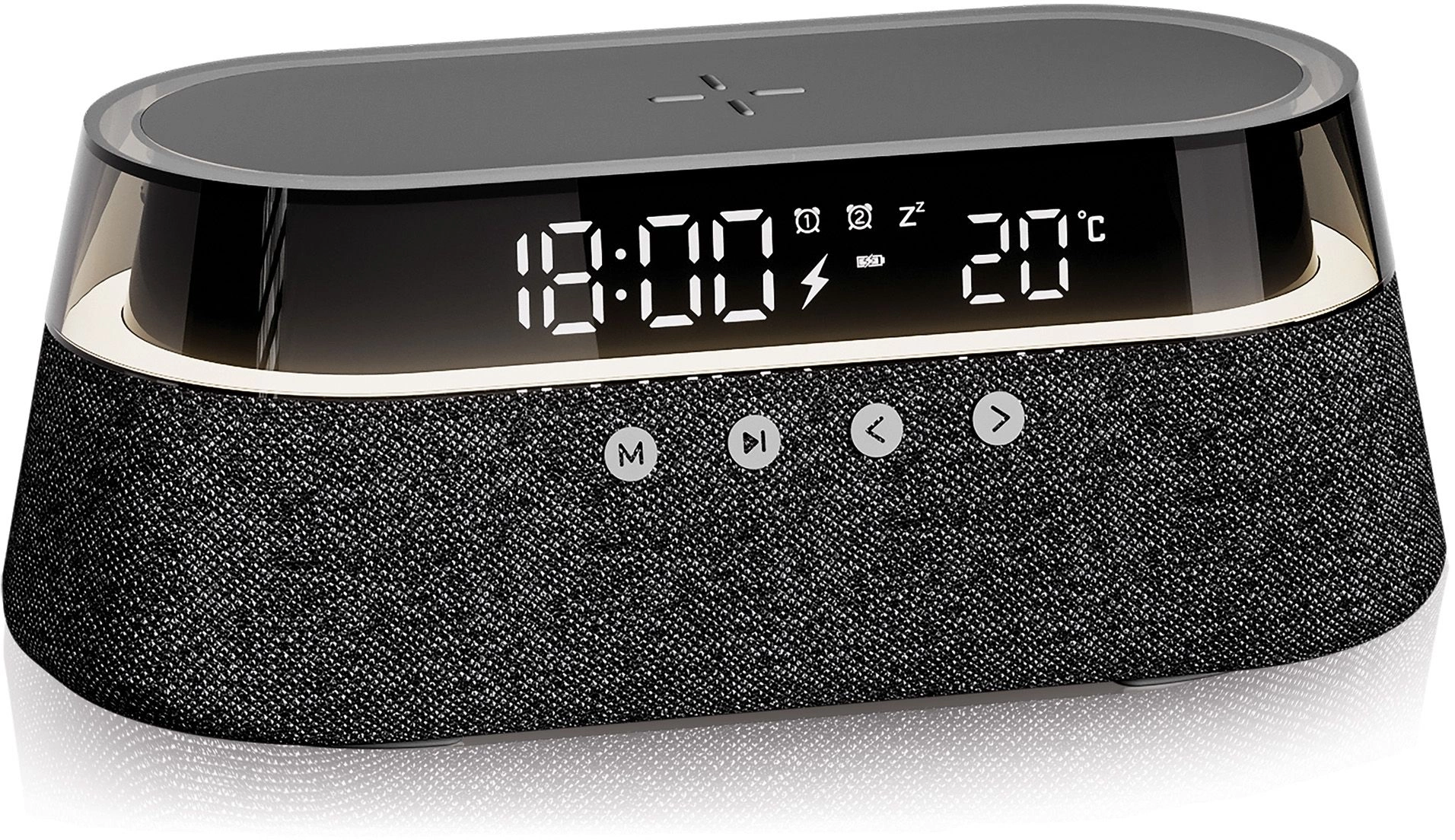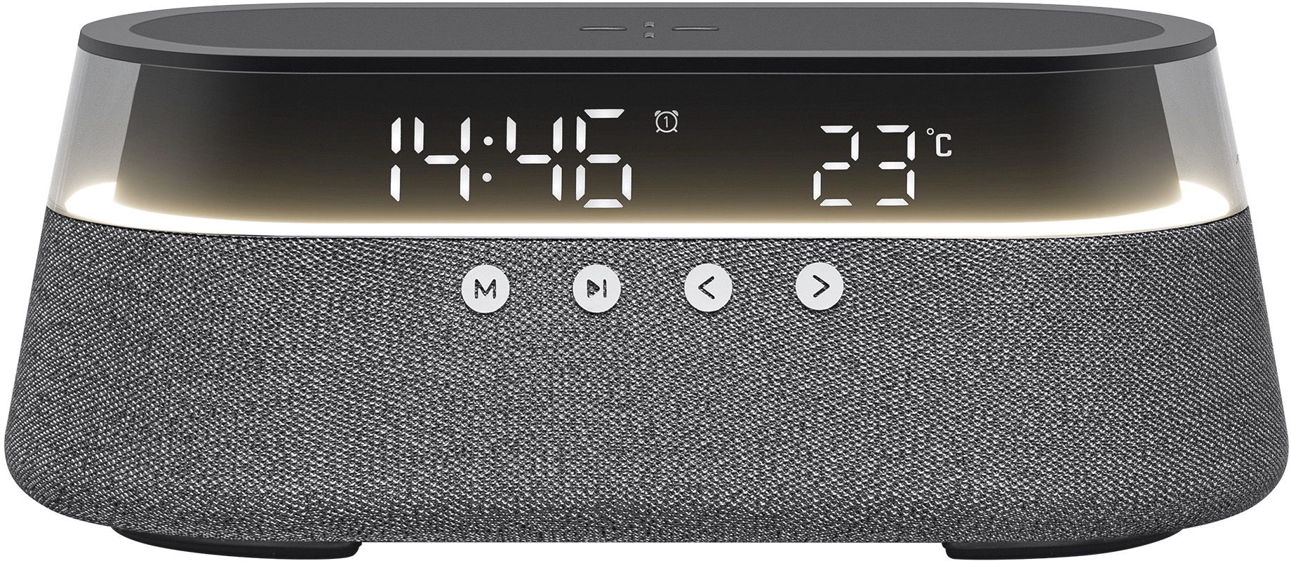 Ночник и часы с регулируемой подсветкой, будильник, радио, беспроводная зарядка для ваших устройств и мощная музыкальная колонка собраны в одном уникальном гаджете.