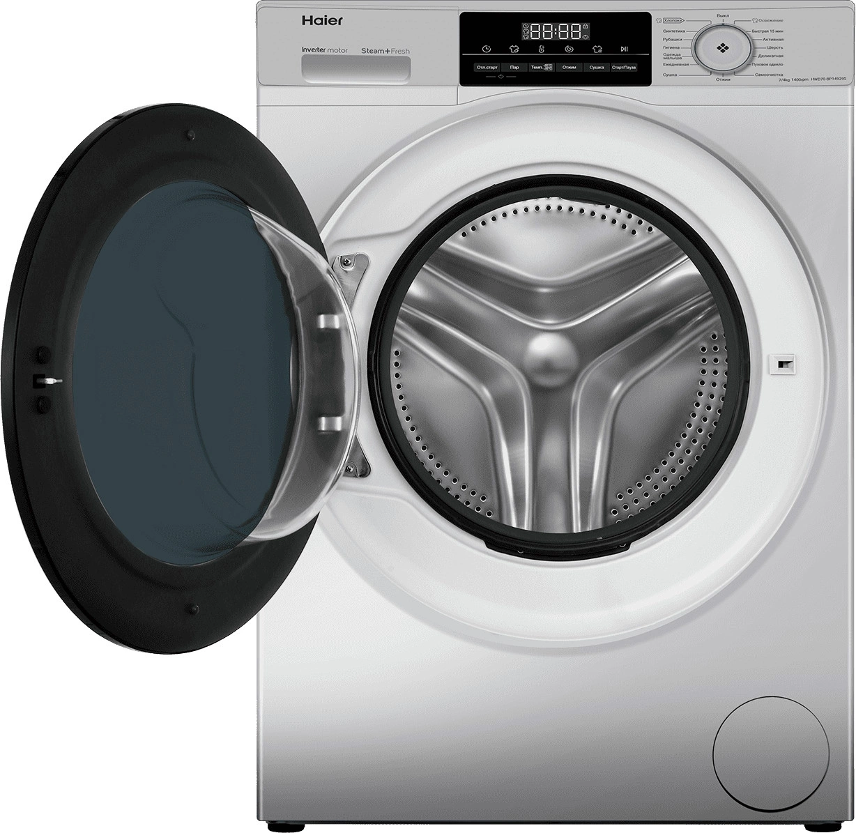 Стиральная машина Haier HWD70-BP14929S класс: B загр.фронтальная макс.:7кг (с сушкой) нержавеющая сталь инвертор