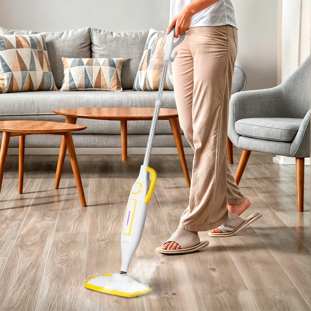 Швабра паровая Kitfort КТ-1097 1250Вт белый/желтый