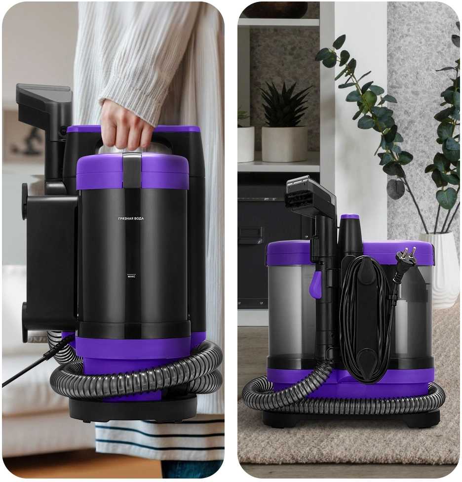 Моющий пылесос для ковров и мягкой мебели КТ-5213 поможет очистить обивку дивана, кресел, сидений в машине и другой мягкой мебели, а также ковры и ковровые покрытия.