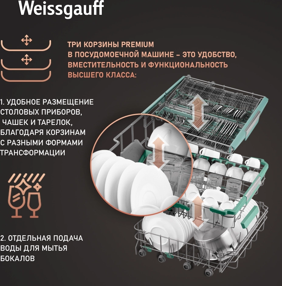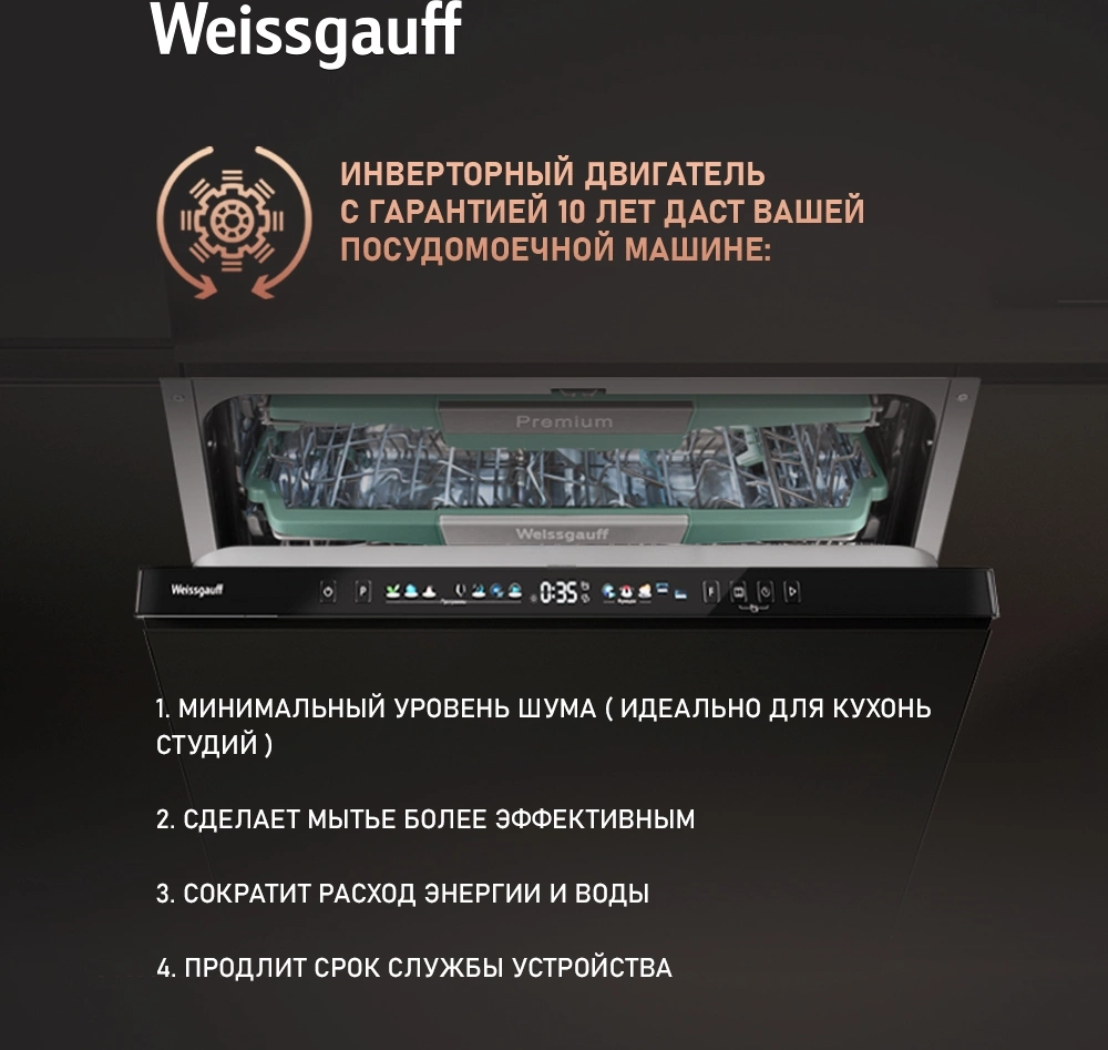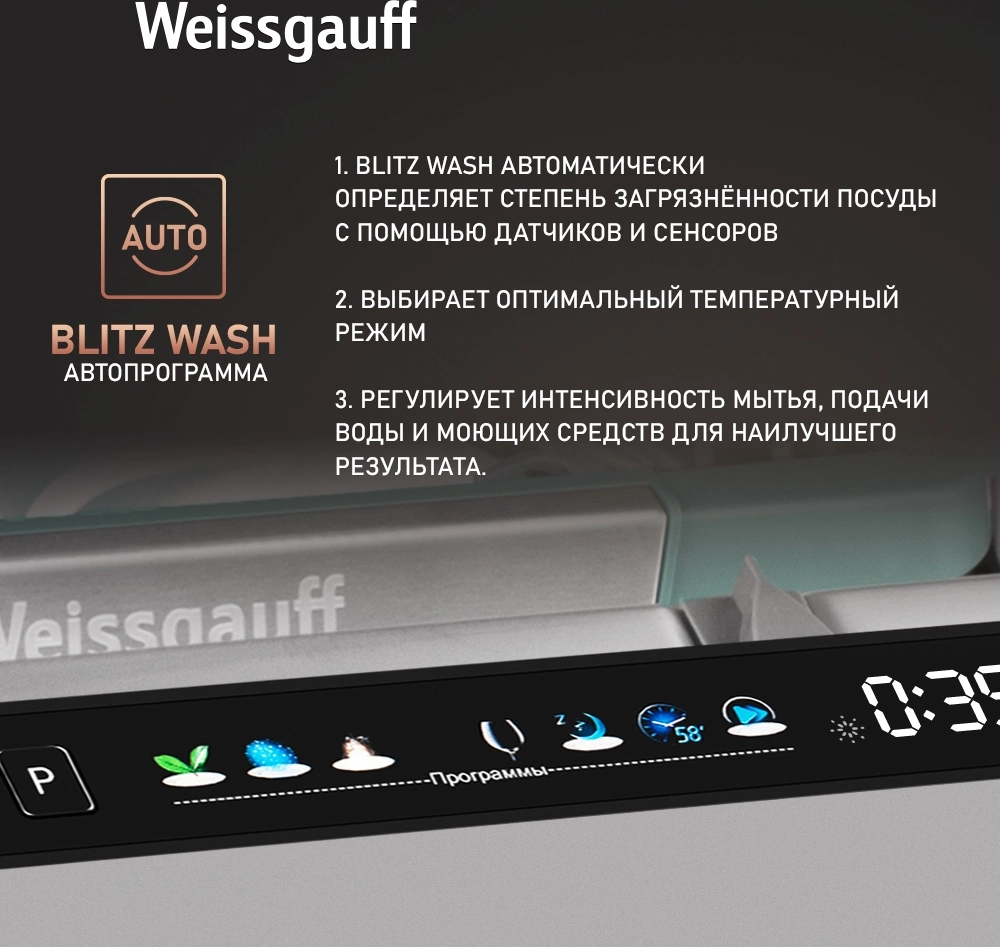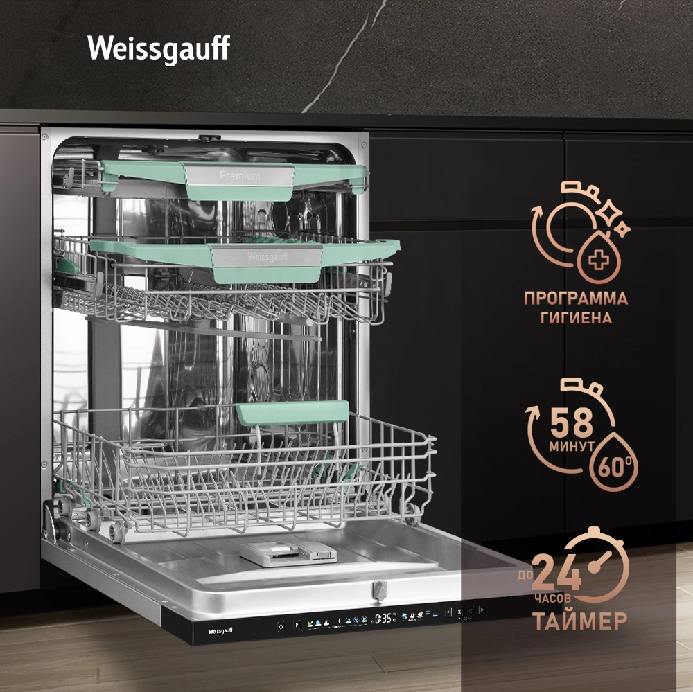 Посудомоечная машина встраив. Weissgauff BDW 6140 Real Touch DC Inverter Timer Floor полноразмерная инвертер