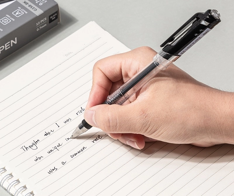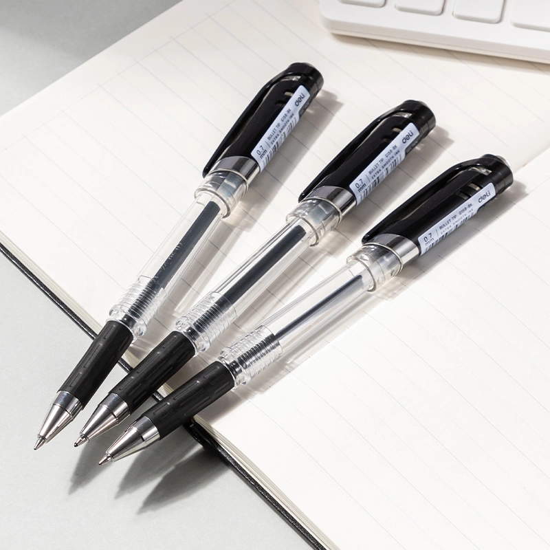 Ручка гелев. Deli EG158-BK прозрачный d=0.7мм черн. черн. резин. манжета