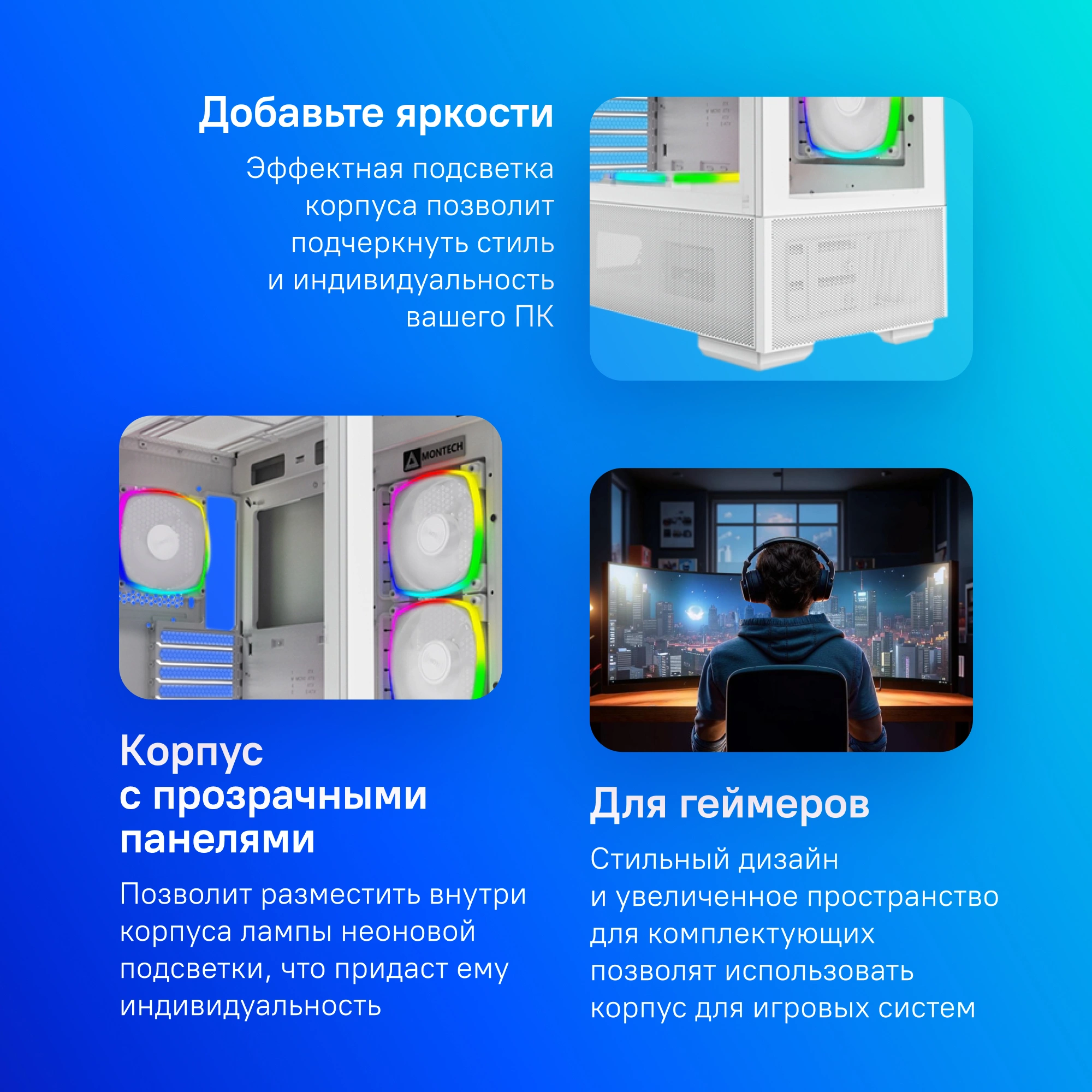 Корпус Montech Sky Two белый без БП ATX 3x140mm 2xUSB3.0 audio bott PSU