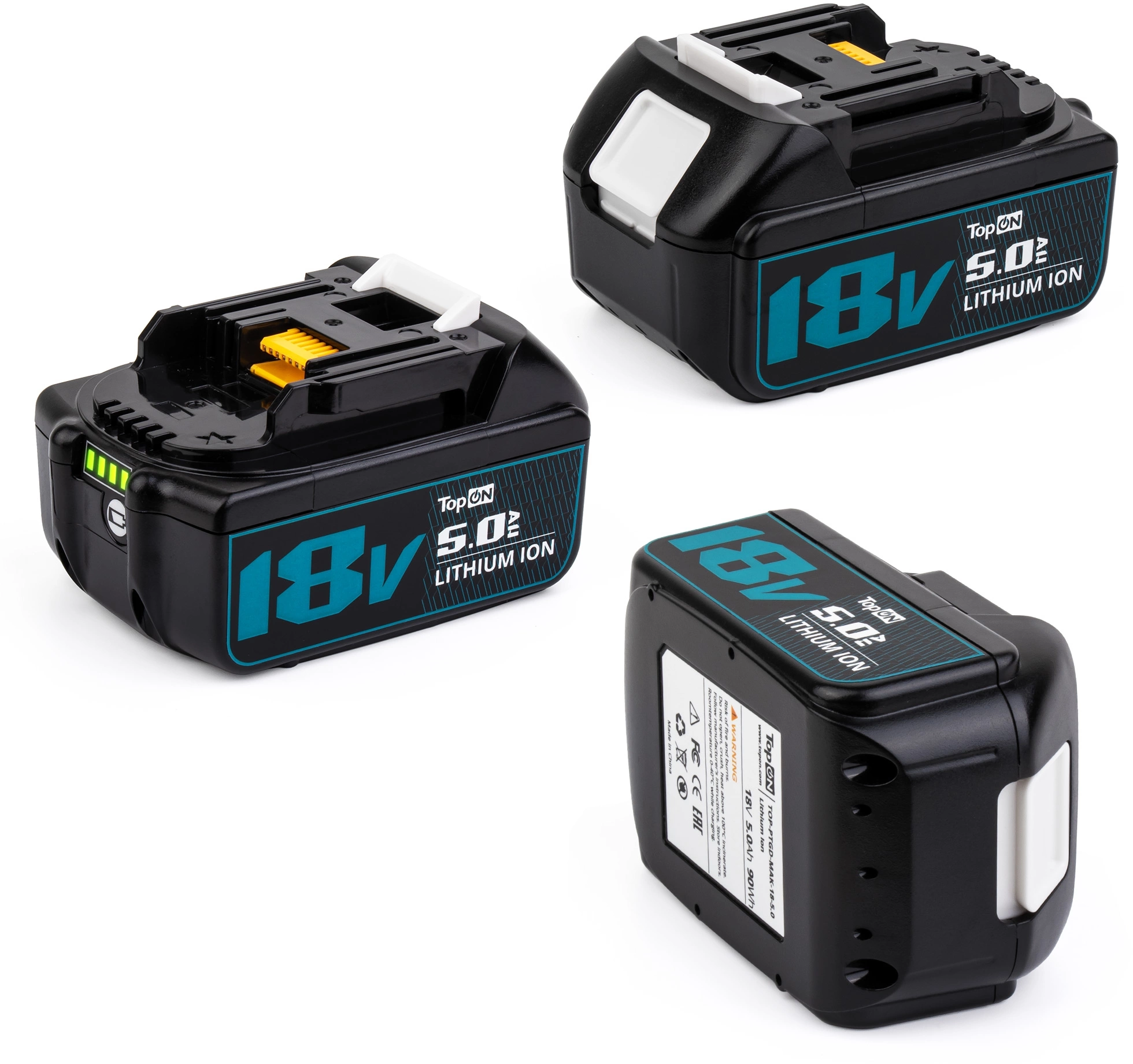 Аккумулятор TopON для электроинструмента Makita BL1850 18V 5.0Ah (Li-ion). PN: 197280-8. Гарантия 12 мес. Соответствует стандартам безопасности ГОСТ 12.2.007.12-88.