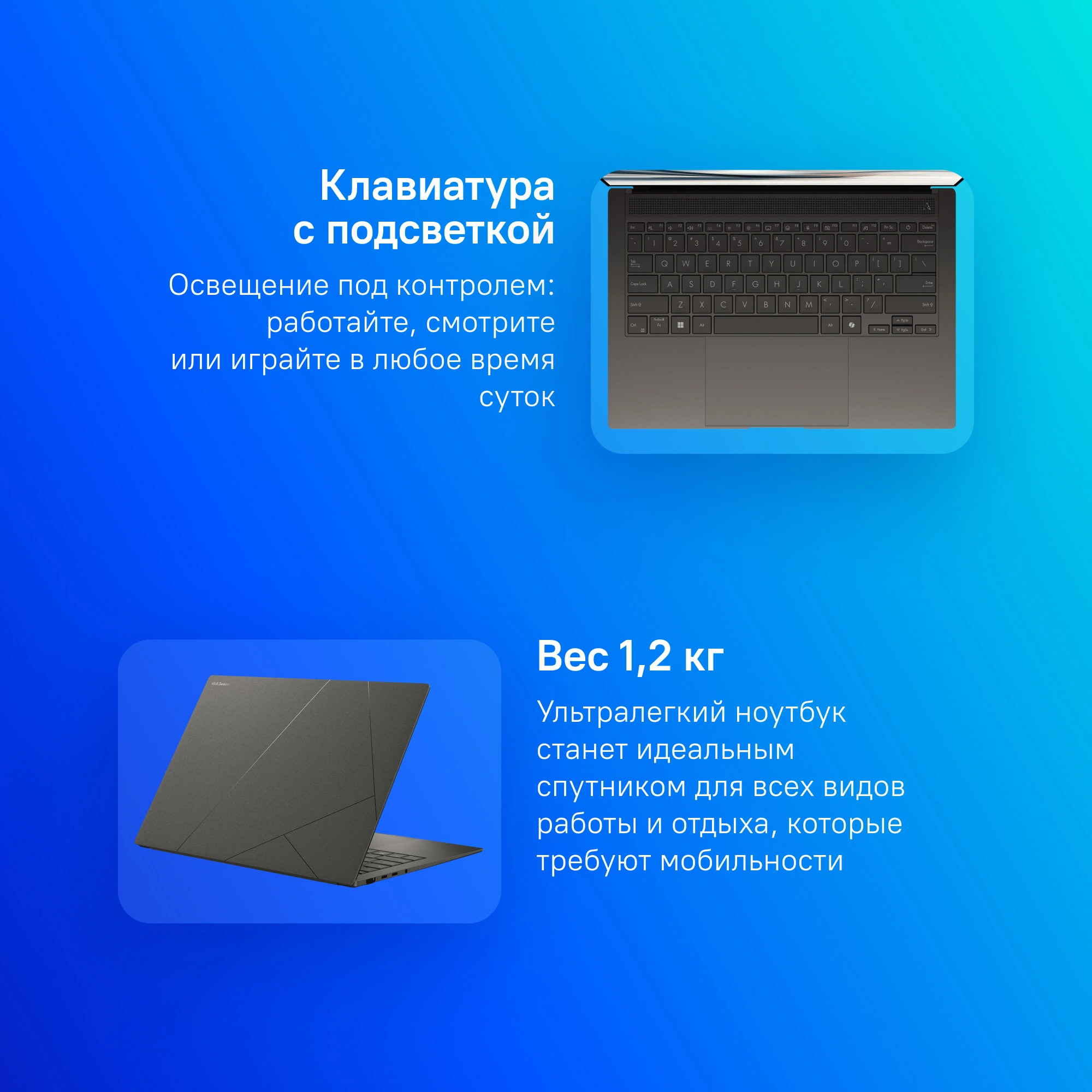 Ноутбук Asus Zenbook S 14 OLED UX5406SA-PV055W Core Ultra 7 258V 32Gb SSD1Tb Intel Arc 140V 14" OLED 3K (2880x1800) Windows 11 Home grey WiFi BT Cam Bag (90NB14F1-M002C0)
