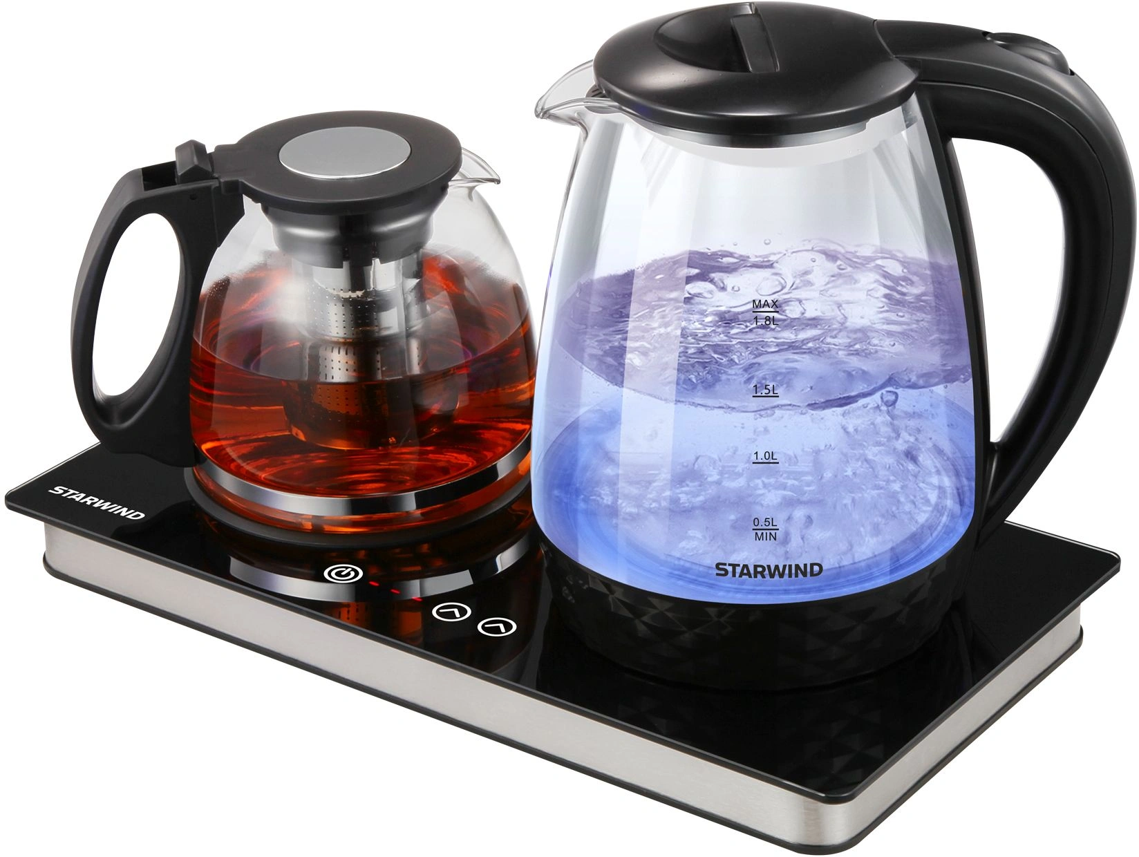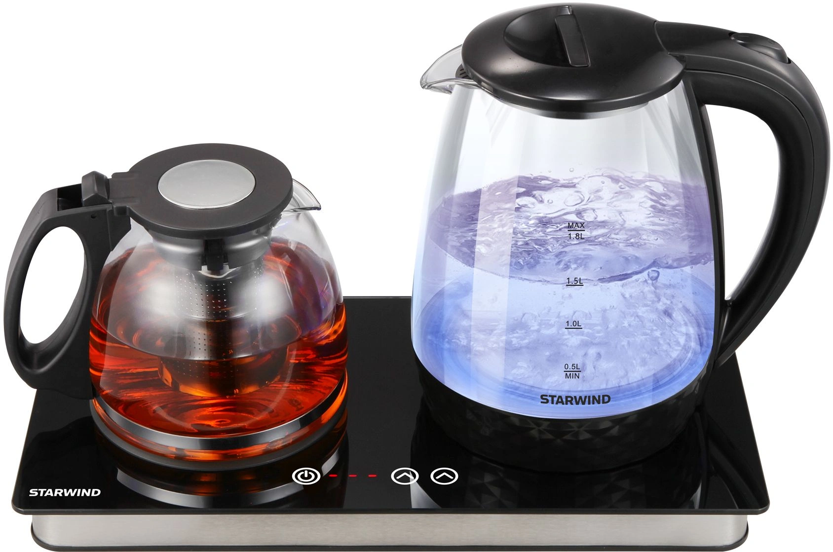 Чайник электрический Starwind SKG4044 1.8л. 1800Вт черный/серебристый корпус: стекло