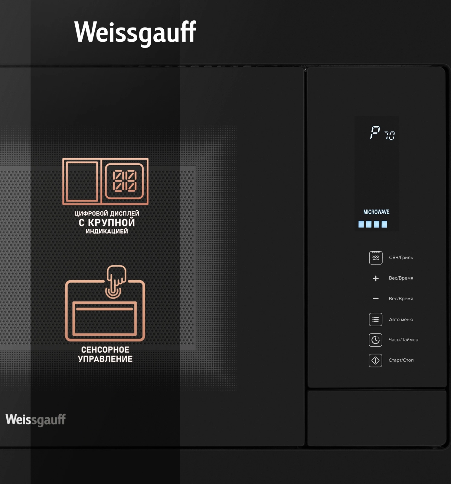 Микроволновая печь Weissgauff HMT-225 Touch Grill 25л. 900Вт черный (встраиваемая)