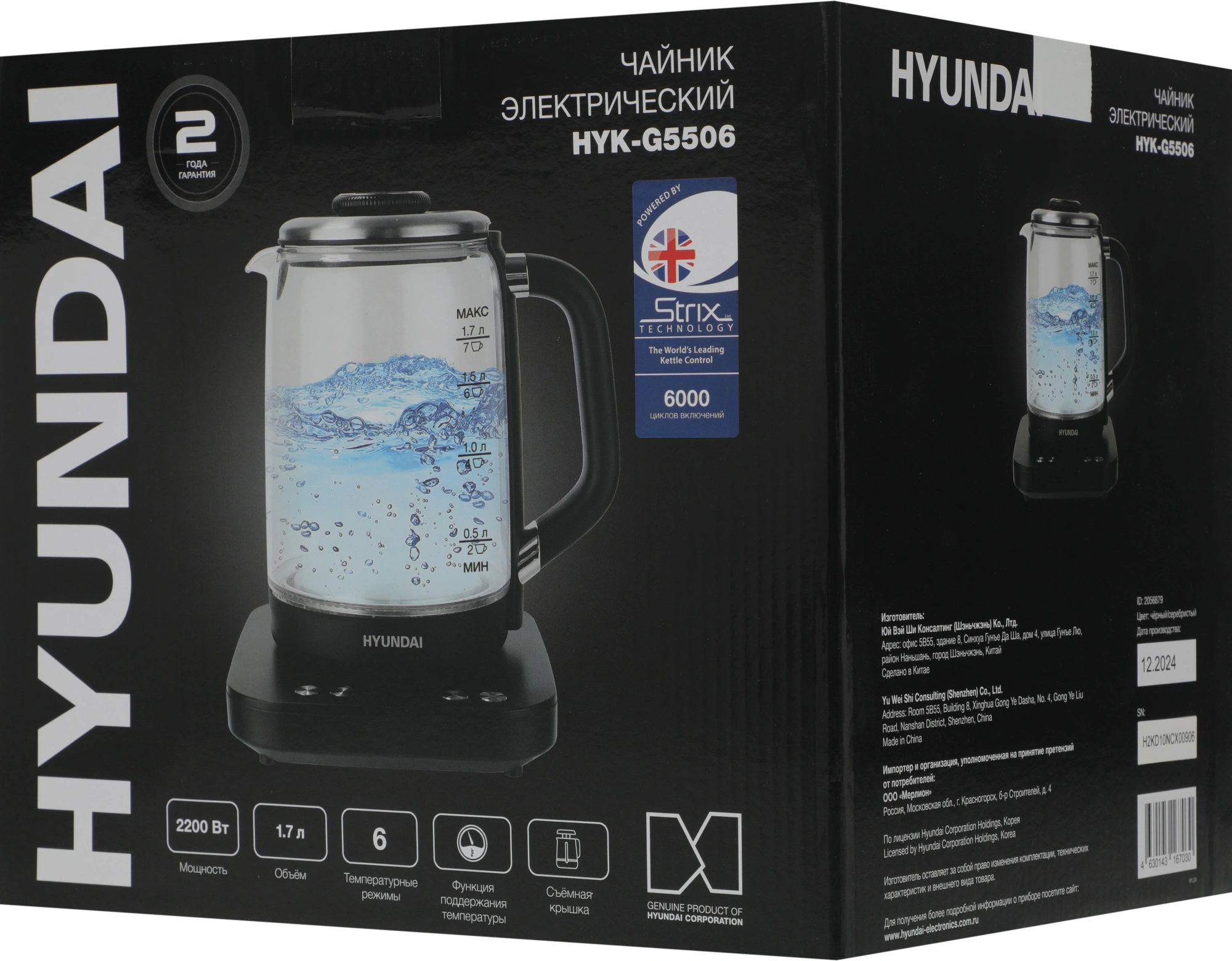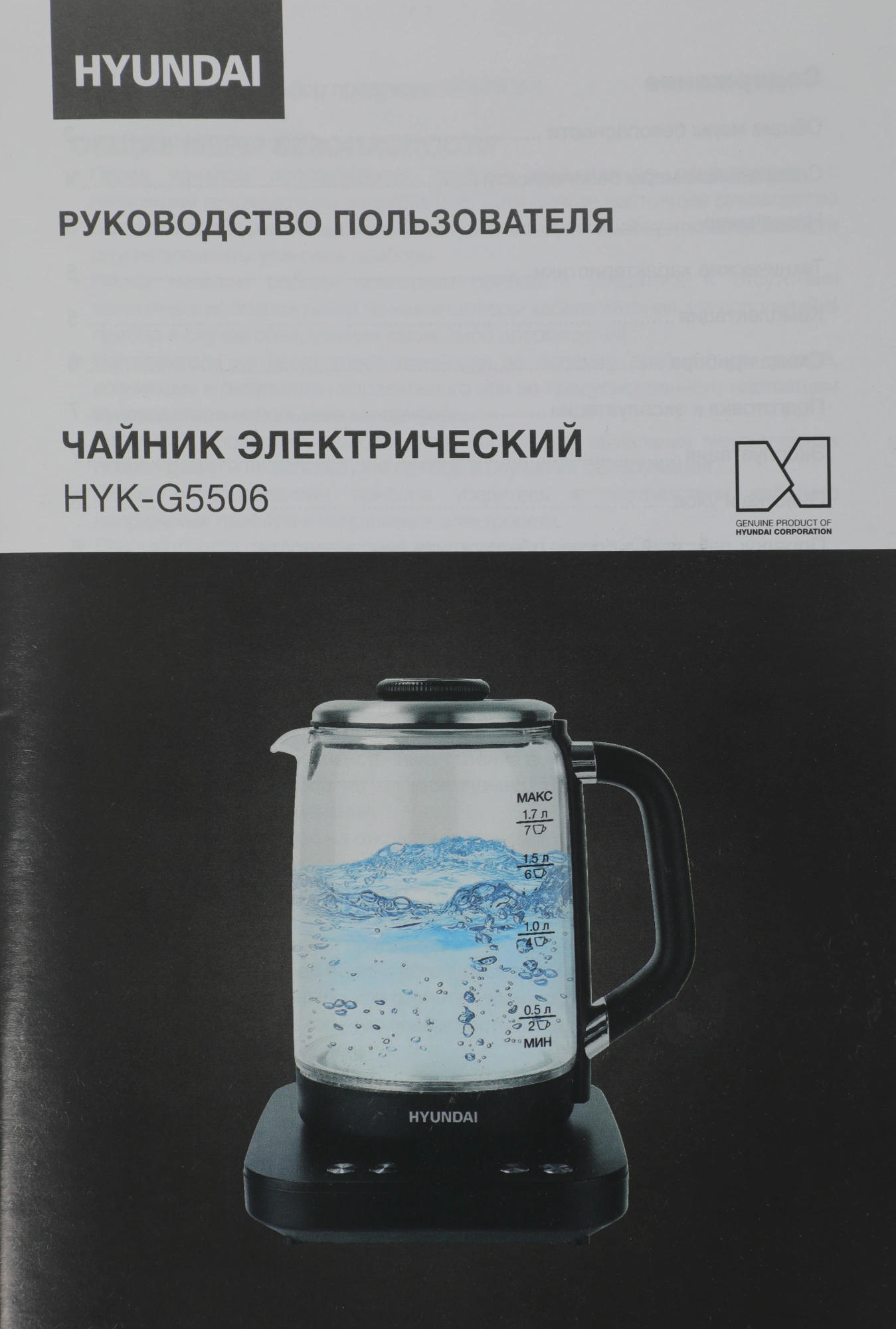 Чайник электрический Hyundai HYK-G5506 1.7л. 2200Вт черный/серебристый корпус: стекло