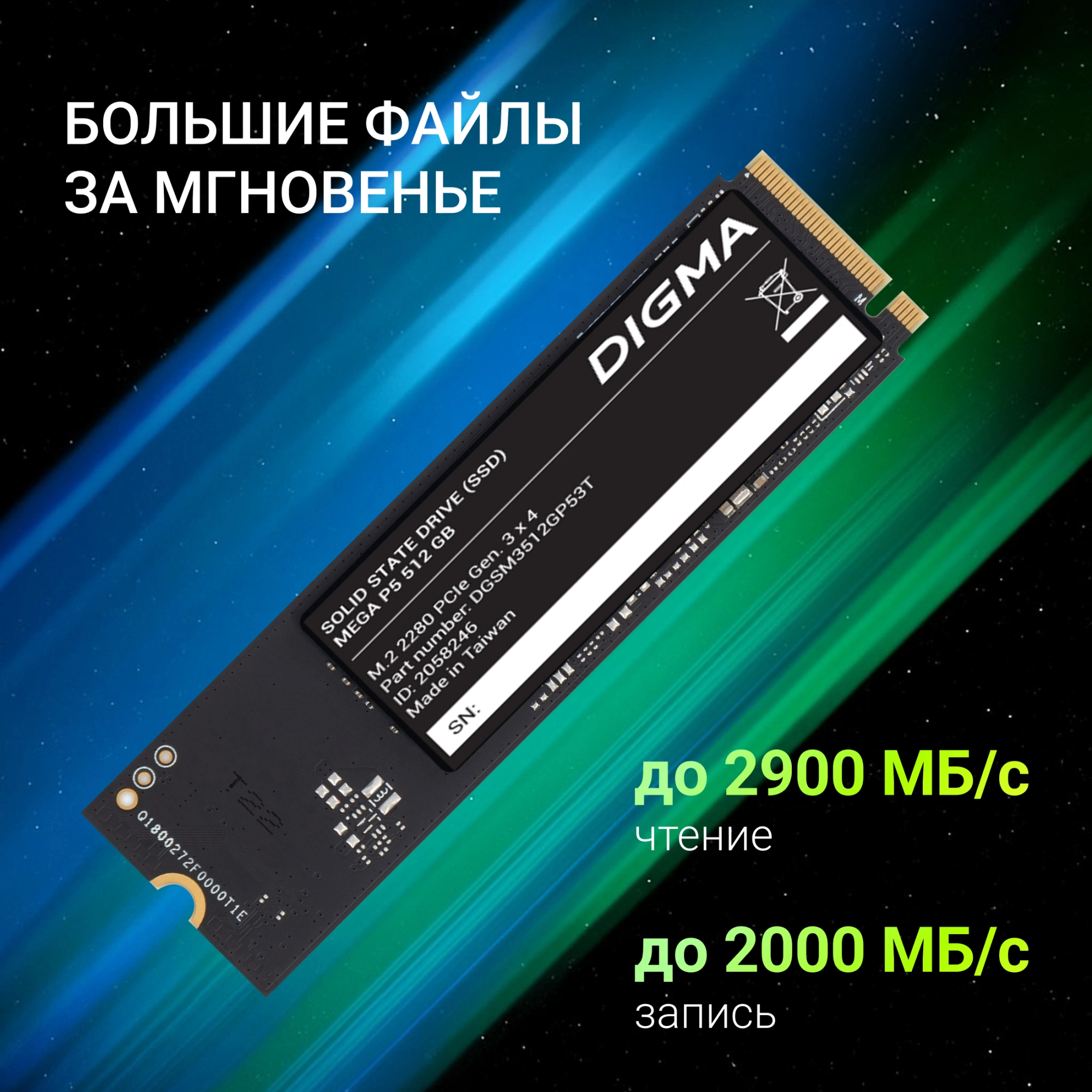 Накопитель SSD Digma PCIe 3.0 x4 512GB DGSM3512GP53T Mega P5 M.2 2280