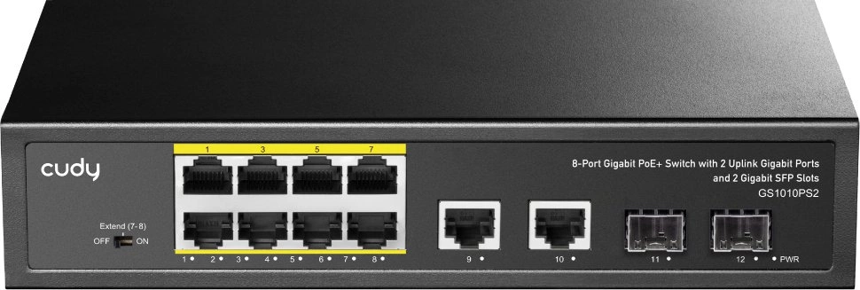 Коммутатор Cudy GS1010PS2 (L2) 10x1Гбит/с 2xКомбо(1000BASE-T/SFP) 2SFP 8PoE 120W неуправляемый