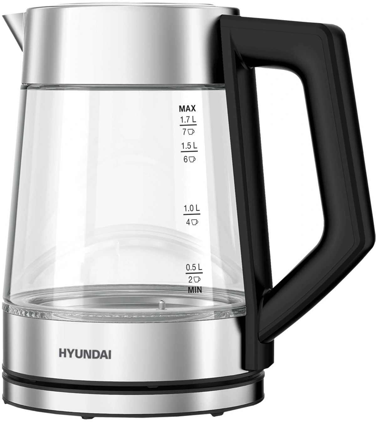 Чайник электрический Hyundai HYK-G4402 1.7л. 2200Вт черный/серебристый корпус: стекло