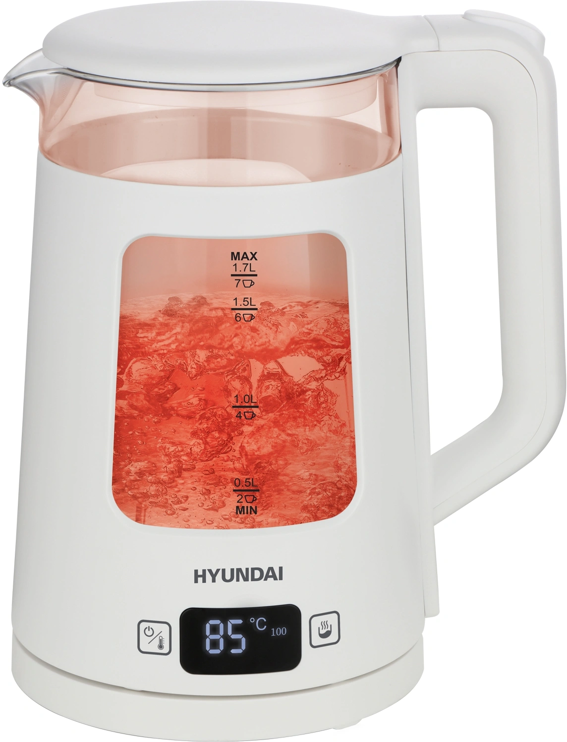 Чайник электрический Hyundai HYK-G9407 1.7л. 2200Вт белый корпус: стекло