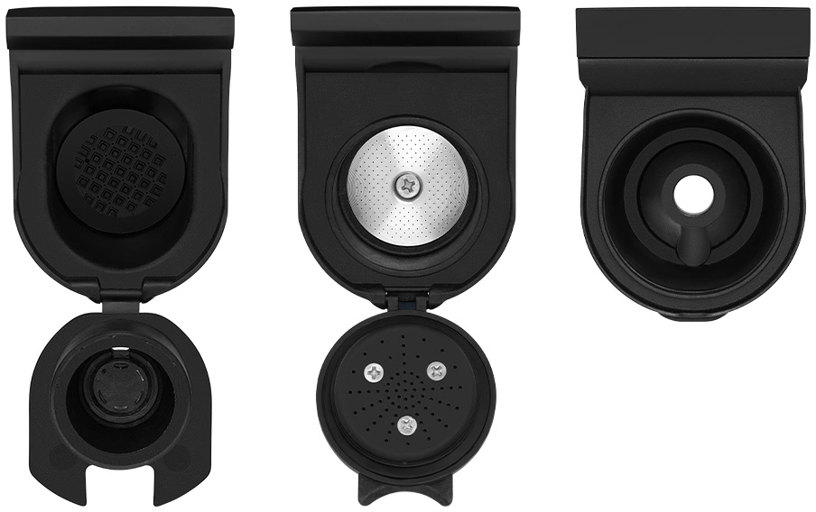 - ОсобенностиКофеварка «3 в 1»: капсулы типа Nespresso Original и Dolce Gusto, молотый кофе