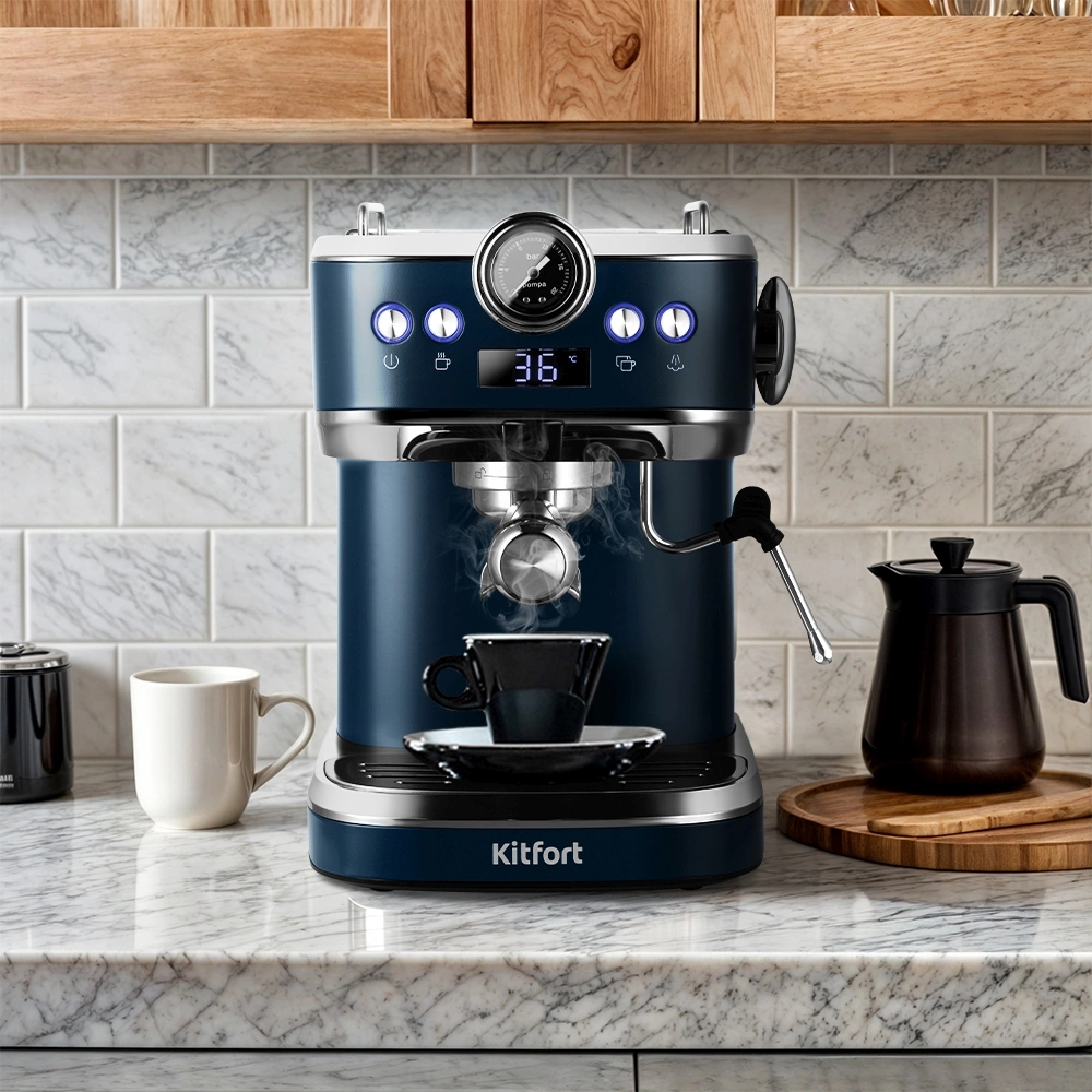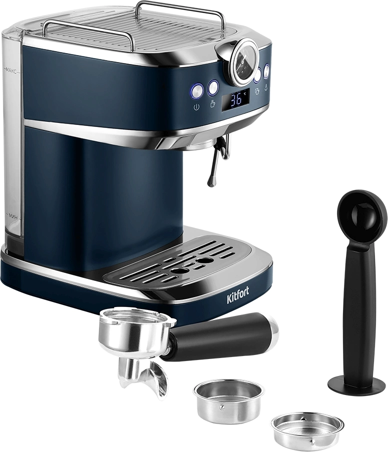 Кофеварка рожковая Kitfort КТ-7429 1360Вт синий/нержавеющая сталь