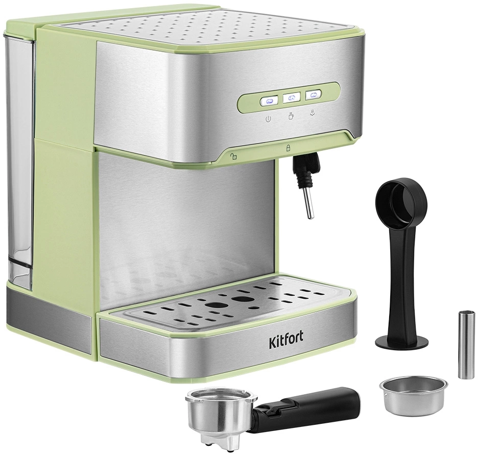 Кофеварка рожковая Kitfort КТ-7442 850Вт зеленый/нержавеющая сталь