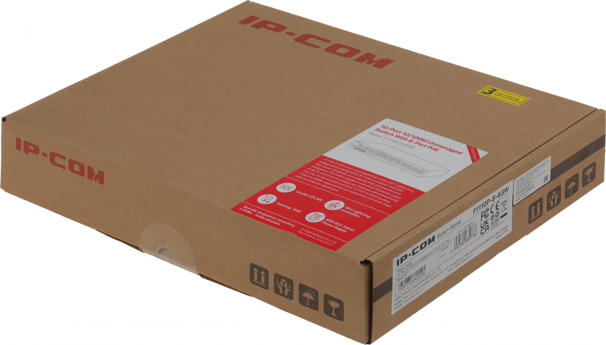 Коммутатор IP-Com F1110P-8-63W (L2) 10x100Мбит/с 8PoE 58W неуправляемый